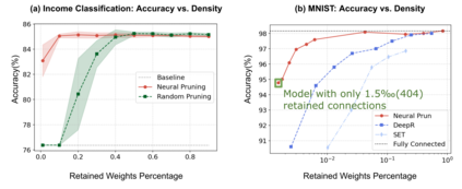 The rapid increase in the parameters of deep learning models has led to significant costs, challenging computational efficiency and model interpretability. In this paper, we introduce a novel and straightforward neural network pruning framework that incorporates the Gumbel-Softmax technique. This framework enables the simultaneous optimization of a network's weights and topology in an end-to-end process using stochastic gradient descent. Empirical results demonstrate its exceptional compression capability, maintaining high accuracy on the MNIST dataset with only 0.15\% of the original network parameters. Moreover, our framework enhances neural network interpretability, not only by allowing easy extraction of feature importance directly from the pruned network but also by enabling visualization of feature symmetry and the pathways of information propagation from features to outcomes. Although the pruning strategy is learned through deep learning, it is surprisingly intuitive and understandable, focusing on selecting key representative features and exploiting data patterns to achieve extreme sparse pruning. We believe our method opens a promising new avenue for deep learning pruning and the creation of interpretable machine learning systems.