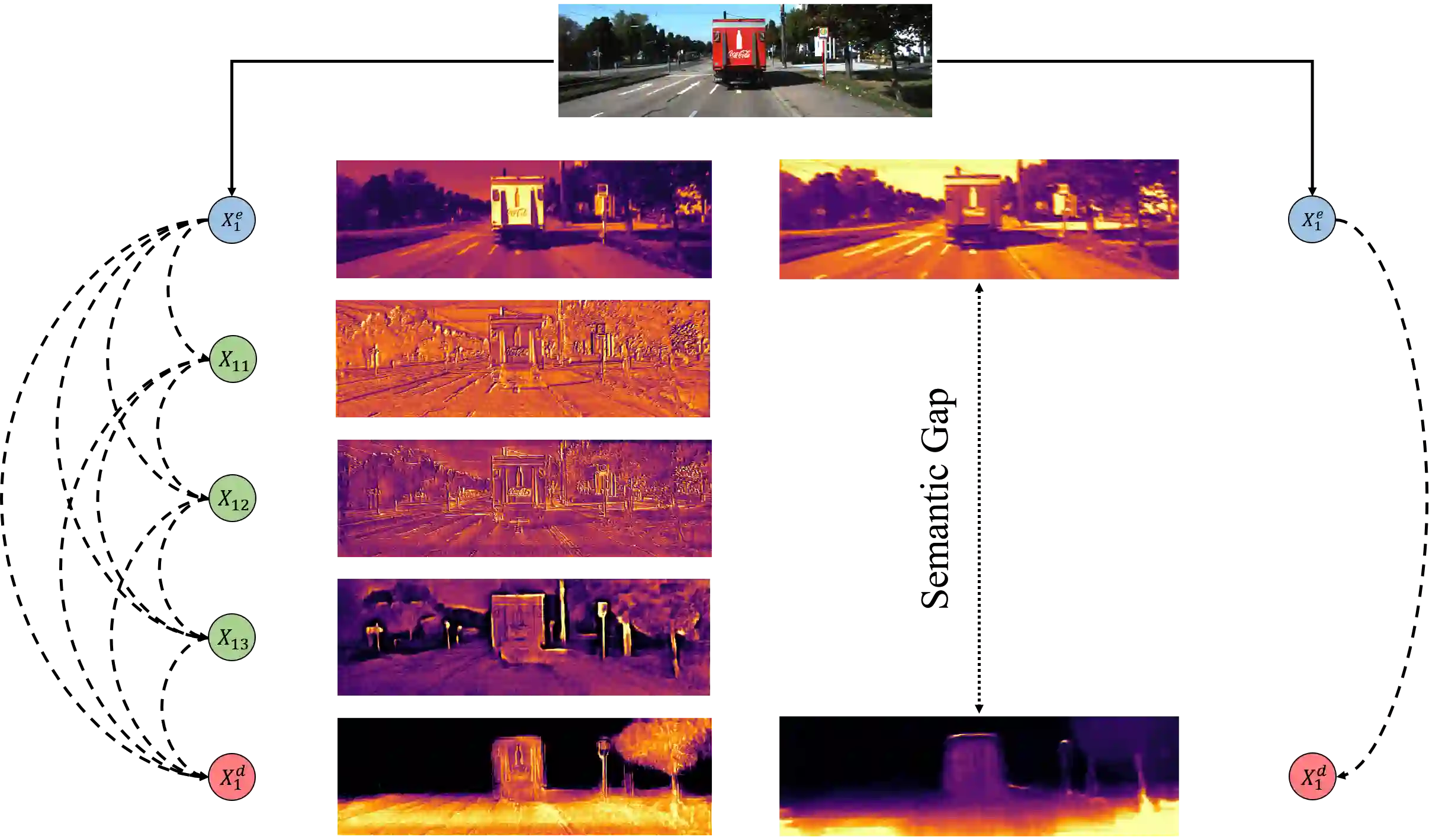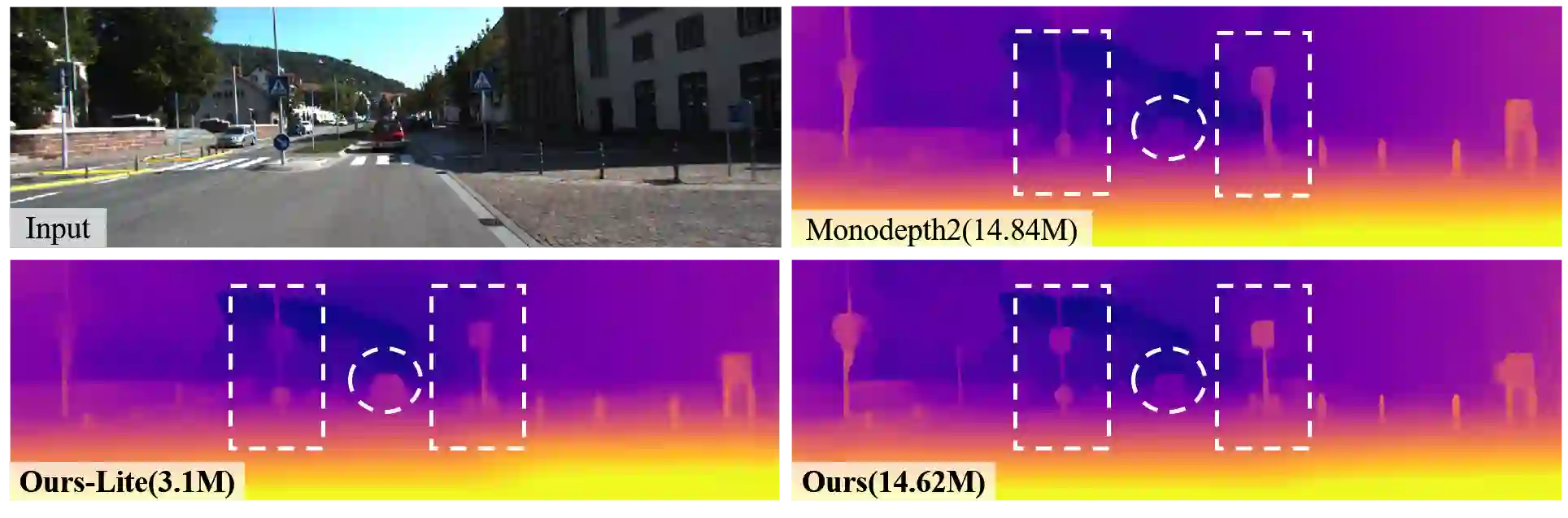 翻译:自我监督的学习在单眼深度估算中显示出巨大的潜力, 使用图像序列作为唯一的监督源。 虽然人们试图使用高分辨率图像进行深度估算, 但预测的准确性并没有显著提高。 在这项工作中, 我们发现核心原因来自大梯度区域的不准确深度估算, 使得双线内插ER- r 或随着分辨率的增加而逐渐消失。 在大梯度区域, 要获得更准确的深度估算, 就必须用空间和语义信息获得高分辨率特征。 因此, 我们提出改进的DepehNet, HR- Depeh, 有两种有效的战略:(1) 重新设计深度网络中的跳接头连接, 以获得更好的高分辨率特征, 并且(2) 提出在大梯度地区进行不准确的深度估算, 使双线性内插和Exucation(fESe) 模块更高效地消失。 HR- Depeh 在大梯度区域获得更准确的深度估算时, 需要获得更准确的深度空间和语义信息。 因此, HR- Dept, 和低分辨率解分解两种方法都具有最低的准性。 。 此外的网络模型, 将大量的网络使用。
