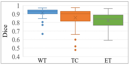 翻译:显微镜及其次区域的自动分离对于诊断、 治疗和监测疾病非常重要。 在本文中, 推荐并应用了称为 TensorMixup 的增强法, 用于脑肿瘤部分的三维 U- Net 结构。 主要想法包括: 首先, 根据具有相同模式的两个病人的磁共振成像数据中的地面真象标签, 根据显微镜信息, 选择了两个大小为128个三维的图像补丁, 其大小为128个的图像补丁。 其次, 使用从Beta 分布中独立采样的所有元素的抗拉来混合图像补丁。 然后, 将扩音器绘制成一个矩阵, 用来混合上述图像部分的单热编码标签。 因此, 合成了一个新的图像及其一热编码的三维的标签。 最后, 使用新数据来培训模型, 该模型可用于分流成像。 实验结果显示, Dice 分数的平均值是91. 32%, 85.67%, 和 82.20% 分别用于整个肿瘤、 肿瘤核心 和加强肿瘤部分的有效肿瘤部分。