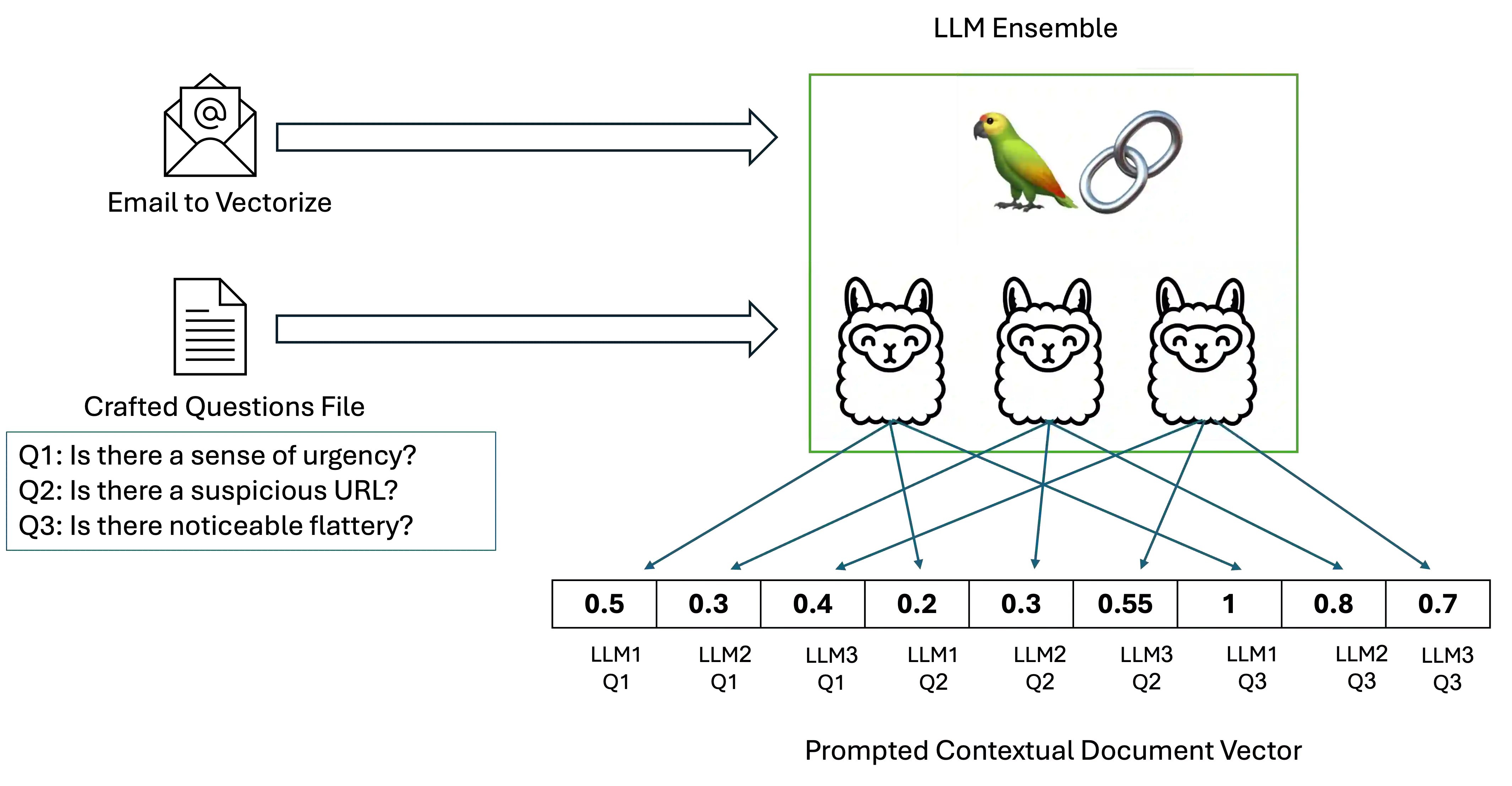 Spear-phishing attacks present a significant security challenge, with large language models (LLMs) escalating the threat by generating convincing emails and facilitating target reconnaissance. To address this, we propose a detection approach based on a novel document vectorization method that utilizes an ensemble of LLMs to create representation vectors. By prompting LLMs to reason and respond to human-crafted questions, we quantify the presence of common persuasion principles in the email's content, producing prompted contextual document vectors for a downstream supervised machine learning model. We evaluate our method using a unique dataset generated by a proprietary system that automates target reconnaissance and spear-phishing email creation. Our method achieves a 91% F1 score in identifying LLM-generated spear-phishing emails, with the training set comprising only traditional phishing and benign emails. Key contributions include an innovative document vectorization method utilizing LLM reasoning, a publicly available dataset of high-quality spear-phishing emails, and the demonstrated effectiveness of our method in detecting such emails. This methodology can be utilized for various document classification tasks, particularly in adversarial problem domains.