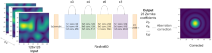 Optical imaging quality can be severely degraded by system and sample induced aberrations. Existing adaptive optics systems typically rely on iterative search algorithm to correct for aberrations and improve images. This study demonstrates the application of convolutional neural networks to characterise the optical aberration by directly predicting the Zernike coefficients from two to three phase-diverse optical images. We evaluated our network on 600,000 simulated Point Spread Function (PSF) datasets randomly generated within the range of -1 to 1 radians using the first 25 Zernike coefficients. The results show that using only three phase-diverse images captured above, below and at the focal plane with an amplitude of 1 achieves a low RMSE of 0.10 radians on the simulated PSF dataset. Furthermore, this approach directly predicts Zernike modes simulated extended 2D samples, while maintaining a comparable RMSE of 0.15 radians. We demonstrate that this approach is effective using only a single prediction step, or can be iterated a small number of times. This simple and straightforward technique provides rapid and accurate method for predicting the aberration correction using three or less phase-diverse images, paving the way for evaluation on real-world dataset.