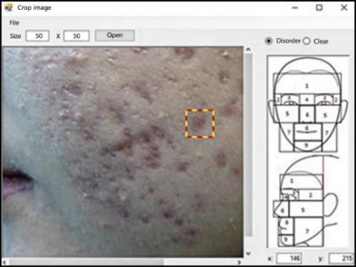 Facial analysis has emerged as a prominent area of research with diverse applications, including cosmetic surgery programs, the beauty industry, photography, and entertainment. Manipulating patient images often necessitates professional image processing software. This study contributes by providing a model that facilitates the detection of blemishes and skin lesions on facial images through a convolutional neural network and machine learning approach. The proposed method offers advantages such as simple architecture, speed and suitability for image processing while avoiding the complexities associated with traditional methods. The model comprises four main steps: area selection, scanning the chosen region, lesion diagnosis, and marking the identified lesion. Raw data for this research were collected from a reputable clinic in Tehran specializing in skincare and beauty services. The dataset includes administrative information, clinical data, and facial and profile images. A total of 2300 patient images were extracted from this raw data. A software tool was developed to crop and label lesions, with input from two treatment experts. In the lesion preparation phase, the selected area was standardized to 50 * 50 pixels. Subsequently, a convolutional neural network model was employed for lesion labeling. The classification model demonstrated high accuracy, with a measure of 0.98 for healthy skin and 0.97 for lesioned skin specificity. Internal validation involved performance indicators and cross-validation, while external validation compared the model's performance indicators with those of the transfer learning method using the Vgg16 deep network model. Compared to existing studies, the results of this research showcase the efficacy and desirability of the proposed model and methodology.