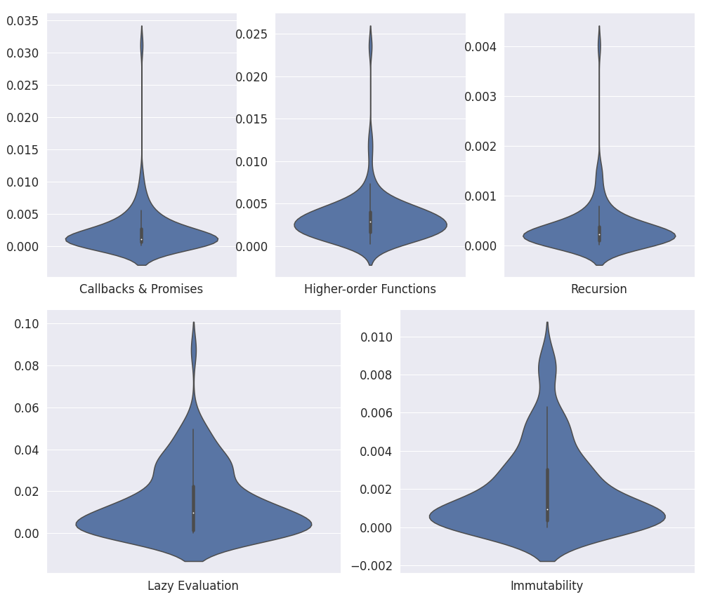 翻译:许多研究人员和开发者认为,这些构建导致更简洁、可重复使用和更容易理解的程序。然而,很少有研究调查在主流编程语言中使用它们的影响。本文量化了通常与JavaScript的功能编程相关的四个概念的普及程度:循环、不流动、懒惰的评价和功能作为价值。我们侧重于 JavaScript 程序,因为这些概念中的一些概念自其创建以来就以语言提供,来自功能编程语言的灵感,以及它的普及程度。我们挖掘了91 GitHub 存储库(2,200,000 LOC),主要在JavaScript(超过代码的50%)中进行,从静时的角度衡量这些概念的使用情况。我们还测量了错误拼凑的可能性,要求删除这些概念(这暗示了易犯错误)及其与代码评论的关联性(这很难理解 ) 。我们发现这些概念被广泛使用(每46.65 LOC,4,59 %的服务器储存库(22) ) (我们发现每1个LC) 的版本(超过Ormability) 的版本使用时间值,而不断使用这些逻辑结构的利用率则意味着不断减少。