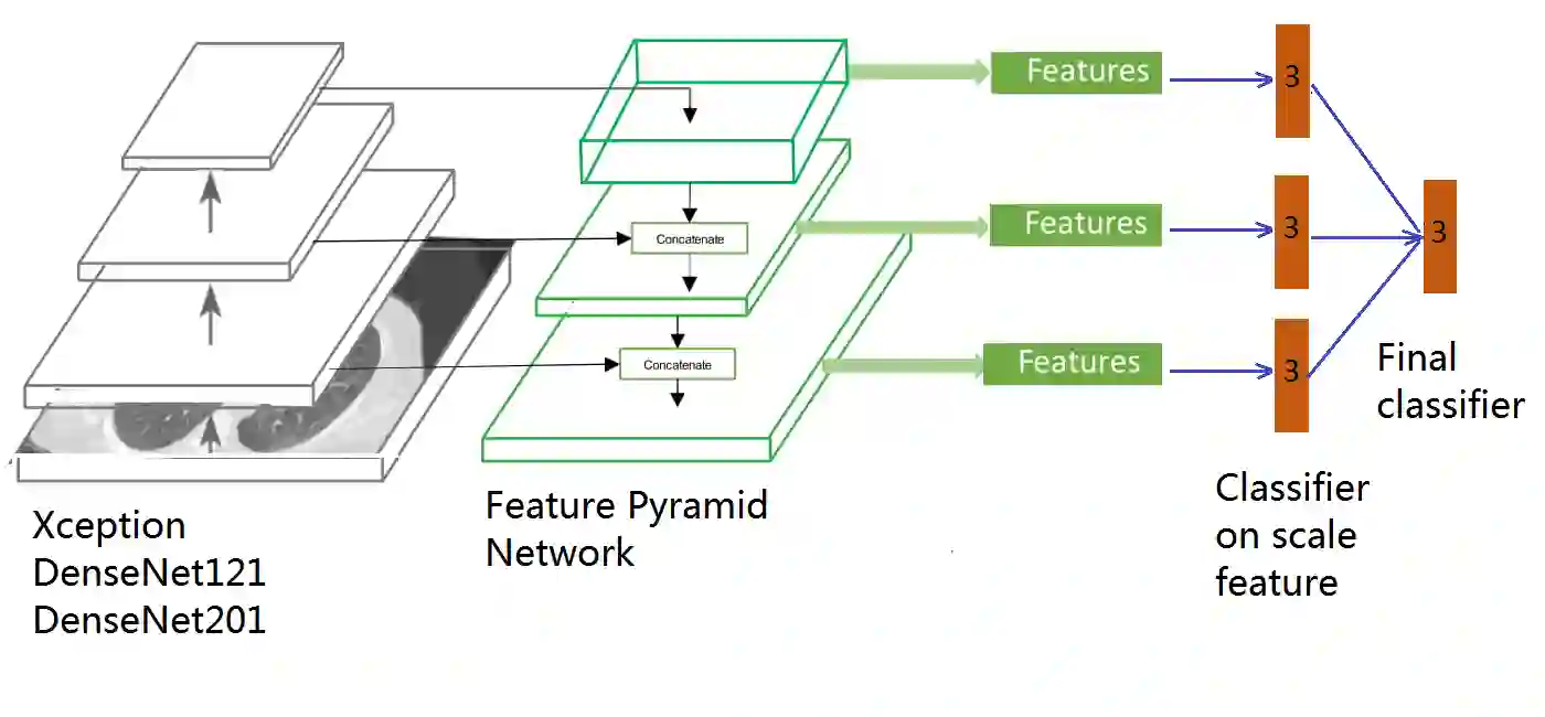 翻译:我们从肺部CT图像中提出了一个自动的COVID1-19诊断框架,重点是小型数据集的信号处理和分类,努力探索数据准备和增强,以提高2DCNN分类模型的普及能力;我们提出使用多个Hounsfield单元(HU)正常化窗口的独特而有效的数据增强方法;此外,原始切片图像被裁剪以排除背景,并应用过滤器来过滤封闭式图像;对于分类网络,我们选择使用2D Densenet和Xcepion,并使用特征金字塔网络(FPN);为了进一步提高分类准确性,我们使用了多个CNN模型和HU窗口的组合。关于培训/验证数据集,我们实现了93.39%的病人分类准确度。