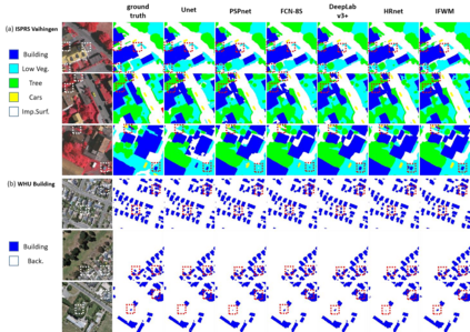 Remote sensing semantic segmentation aims to assign automatically each pixel on aerial images with specific label. In this letter, we proposed a new module, called improved-flow warp module (IFWM), to adjust semantic feature maps across different scales for remote sensing semantic segmentation. The improved-flow warp module is applied along with the feature extraction process in the convolutional neural network. First, IFWM computes the offsets of pixels by a learnable way, which can alleviate the misalignment of the multi-scale features. Second, the offsets help with the low-resolution deep feature up-sampling process to improve the feature accordance, which boosts the accuracy of semantic segmentation. We validate our method on several remote sensing datasets, and the results prove the effectiveness of our method..