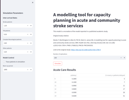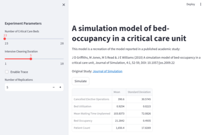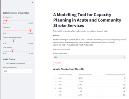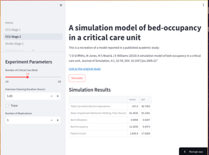 Discrete-event simulation (DES) is widely used in healthcare Operations Research, but the models themselves are rarely shared. This limits their potential for reuse and long-term impact in the modelling and healthcare communities. This study explores the feasibility of using generative artificial intelligence (AI) to recreate published models using Free and Open Source Software (FOSS), based on the descriptions provided in an academic journal. Using a structured methodology, we successfully generated, tested and internally reproduced two DES models, including user interfaces. The reported results were replicated for one model, but not the other, likely due to missing information on distributions. These models are substantially more complex than AI-generated DES models published to date. Given the challenges we faced in prompt engineering, code generation, and model testing, we conclude that our iterative approach to model development, systematic comparison and testing, and the expertise of our team were necessary to the success of our recreated simulation models.