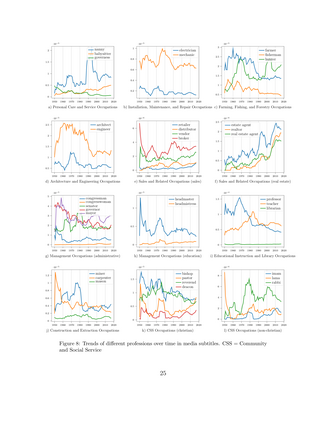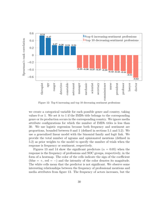 翻译:媒体对文化、教育、政府、宗教和家庭的描述随着人们理解和认识这些表达方式并将其纳入他们的信仰和行动而影响其功能和演变。我们必须研究媒体对这些社会结构的描述,以免传播或强化负面的陈规定型观念,或歧视任何人口部分。在这项工作中,我们审查媒体对职业的描述,并在娱乐媒体内容中提供对其发生率和情绪表达的计算性见解。我们创建了专业团体和职称的可搜索分类,以便利他们从电影和电视(电视)等语音和声频文本段落中检索到功能和演变。我们利用这种分类和相关自然语言处理模式,在媒体内容中建立一系列专业性提及,涵盖超过136 000个伊斯兰医学手册。我们在70年(1950-2017年)中,对不同职业的频率和情绪趋势进行计算性分析,研究媒体特征的影响,如genreire、制片国家和职称类型为电影和电视(电视)的字幕字幕字幕。我们利用这种分类和相关的自然语言处理模式来创建一套专业文章,在媒体内容中,在媒体中,在阅读和脚本方面,我们所表述的频率和情绪分析的频率和情绪变化。我们所展示的相对,在媒体中,在媒体中,阅读和脚本中,阅读中,阅读和脚本中更多地反映了媒体、阅读和脚本和脚本上,我们阅读、阅读、阅读、阅读、阅读、阅读、阅读、阅读、阅读、阅读、阅读、阅读、阅读、阅读、阅读、阅读、阅读、阅读、阅读、阅读、阅读、阅读、阅读、阅读、阅读、阅读、阅读、阅读、阅读、阅读、阅读、阅读、阅读、阅读、阅读、阅读、阅读、阅读、阅读、阅读、阅读、阅读、阅读、阅读、比、阅读、阅读、阅读、阅读、阅读、阅读、阅读、阅读、阅读、阅读、阅读、阅读、阅读、阅读、阅读、阅读、阅读、阅读、阅读、阅读、阅读、阅读、阅读、阅读、阅读、阅读、阅读、阅读、阅读、阅读、阅读、阅读、阅读、阅读、阅读、阅读、阅读、阅读、阅读、阅读、阅读、阅读、阅读、阅读、阅读、阅读、阅读、阅读、阅读、阅读、阅读、阅读、阅读、阅读、阅读、阅读、阅读、阅读、阅读、阅读、阅读、阅读、阅读、阅读、阅读、