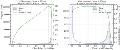 翻译:信号背地分类是高能源物理的一个中心问题,它对于发现新的基本粒子起着重要作用。最近的一种方法 -- -- 参数神经网络(PNN) -- -- 利用多重信号质量假设作为附加输入特征,以有效取代整套单个分类器,每个都(原则上)为单一质量假设提供最佳反应。在这项工作中,我们的目标是根据现实世界的使用情况加深对PNN的理解。我们发现了一些参数网络的特殊性,为它们提供了直觉、度量度和指导方针。我们进一步提出了替代的参数化计划,从而产生了一个新的准修复神经网络结构:AffinePNN;以及许多其他普遍适用的改进。最后,我们广泛评价了我们关于HOPMASS数据集的模型及其不平衡版本(称为HEPMASS-IMB),我们在这里第一次提供了模型,以进一步验证我们的方法。如果结果涉及拟议的设计决定、分类性能和内插能力的影响,则提供结果。
