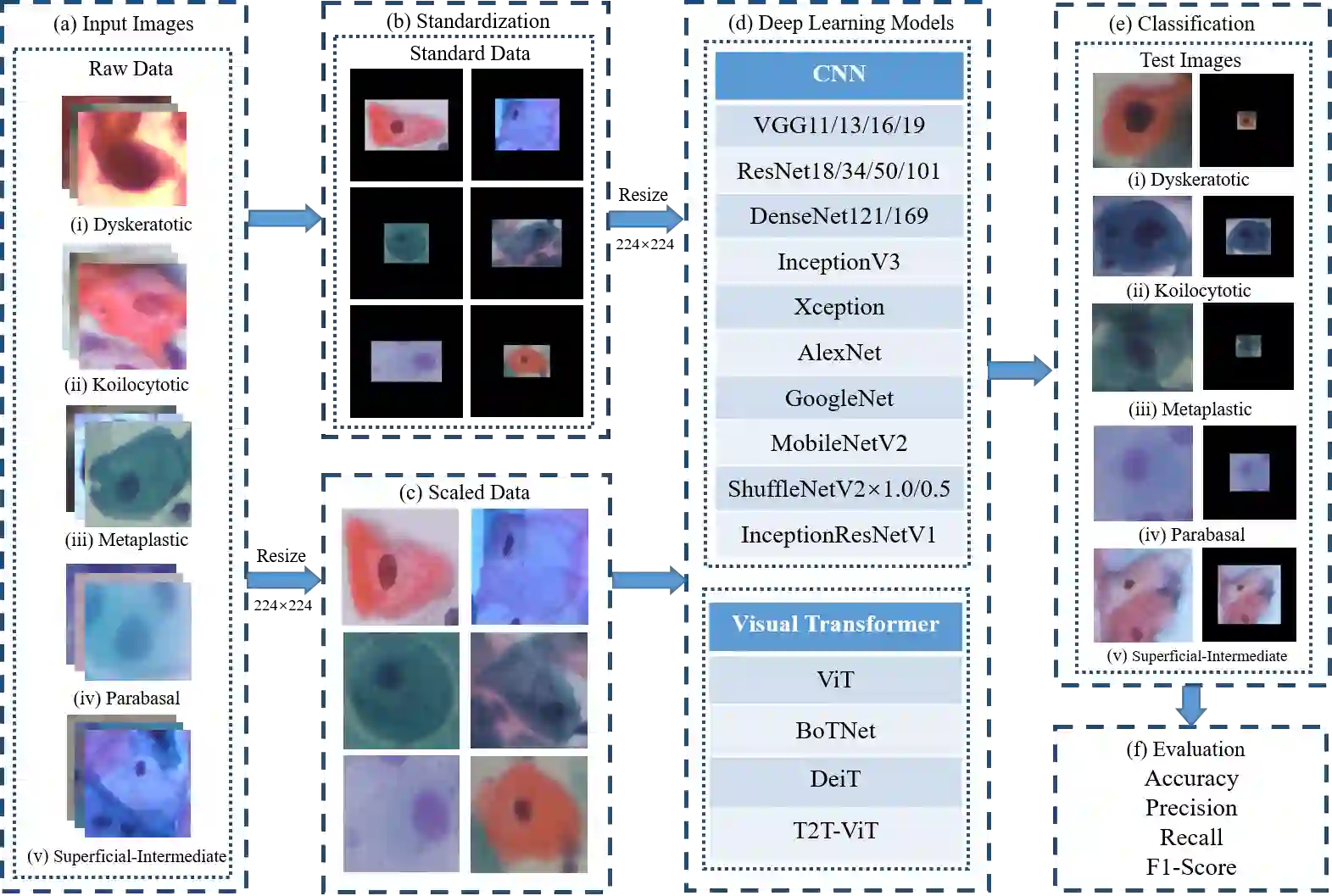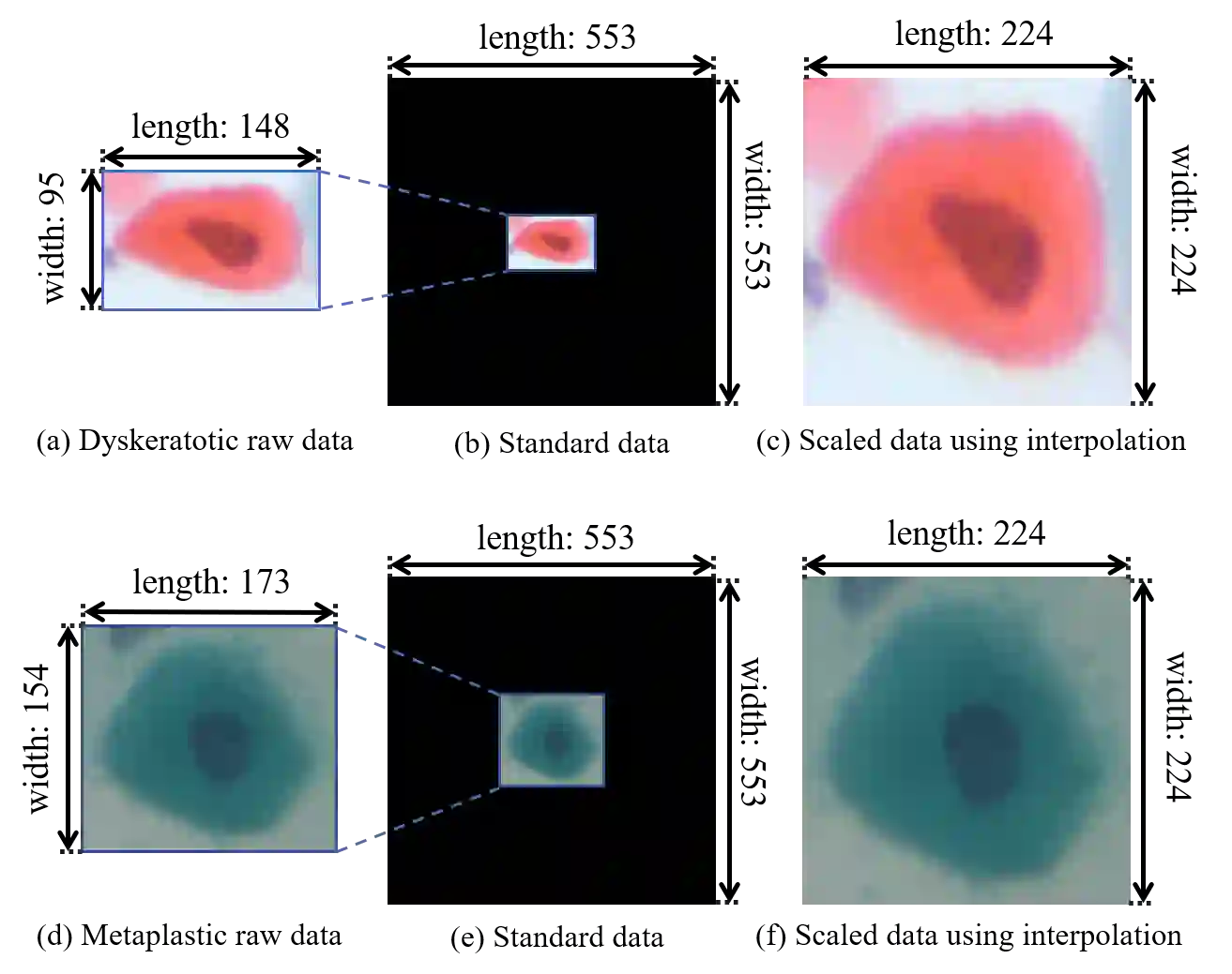 翻译:宫颈癌是妇女非常常见和致命的癌症。 细胞病理学图像经常被用来筛查癌症。 由于人工筛查中可能出现大量错误, 开发了基于深层学习的计算机辅助诊断系统。 深层次的学习方法需要固定的输入图像大小, 但临床医学图像的大小不一致。 图像的侧面比例在直接调整其大小时会受到影响。 临床中, 细胞病理学图像内的细胞的侧面比例为医生诊断癌症提供了重要信息。 因此, 直接调整比例是不合逻辑的。 但是, 许多现有研究直接调整图像大小并获得非常可靠的分类结果。 为了找到合理的解释, 我们进行了一系列比较实验。 首先, SIPAKMEMD数据集的原始数据是预先处理的, 以获得标准和缩放数据集。 然后, 数据集被重新缩放到 224 x 224 像素。 最后, 使用22 深学习模型来分类标准和缩放数据集。 结论是, 深层次的学习模型对于她宫颈细胞图象的方面比例的变化也很可靠。