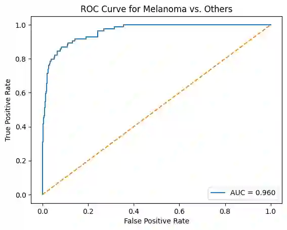 翻译:早期检测黑色素瘤已变得至关重要,因为它能显著提高生存率,但皮肤病变的自动化分析仍面临挑战。ABCDE(代表不对称性、边界不规则性、颜色变化、直径和演变)是一种广为人知的皮肤病变分类方法,但大多数深度学习机制将其视为黑箱,因为其中可解释的人类特征大多未被阐明。本研究提出一种深度学习框架,既能将皮肤病变分类为不同类别,也能量化每个ABCD特征的评分。该框架通过模拟这些特征随时间演变的过程来表征E维度,为未来探索开辟更多窗口。本研究特别对A、B、C、D值进行了量化。此外,该框架还能在潜在空间中可视化ABCD特征轨迹,呈现皮肤病变从良性痣演变为恶性黑色素瘤的过程。实验使用HAM10000数据集进行,该数据集包含约一万张不同阶段皮肤病变图像。总体而言,分类准确率约为89%,黑色素瘤的AUC达到0.96;特征评估在预测不对称性、颜色变化和直径方面表现良好,但边界不规则性的建模仍较为困难。本工作提供的深度学习框架将使医生能够将机器学习诊断与临床相关标准联系起来,从而增进我们对皮肤癌进展的理解。