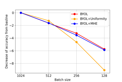 翻译:自我监督的学习方法避免了对比模式,并随后消除了负抽样的计算负担;然而,与对比方法相比,这一模式下的特征表现在单位-全屏代表空间表面分布不善,但与对比方法相比,在单位-全屏代表空间表面分布不善;这项工作从经验上表明,在BYOL雇用时,差异性损失造成的多样性是有益的,因此提供了更大的阶级间特征分离性。因此,为了实现特征的更统一分布,我们主张尽可能减少BYOL网络重量中的超球能(即最大限度地增加英特普)。我们表明,在标准损失的同时,直接优化统一度,或者使BYOL结构的网络正规化,以尽量减少神经元的超球性能量,可以产生更一致的分布,更好地表现下游任务。