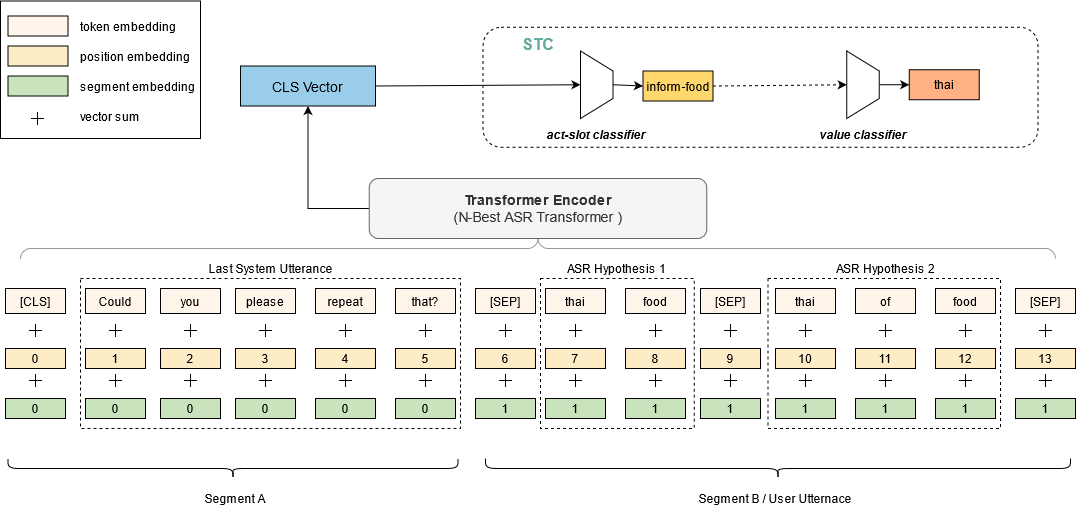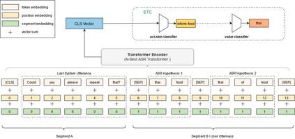 翻译:语言理解(SLU)系统将语言分析分析成语义结构,如对话行为和空档。这涉及使用自动语音识别器(ASR)将语言转换成多文本替代物(假称) 。 ASR中常见的描述错误对下游 SLU 性能产生负面的影响。 减轻这种错误的方法包括使用来自ASR的更丰富的信息,或者以最佳假设或文字相对立的形式。 我们假设变压器模型学习得更好,使用N-最佳ASR替代物的配方进行更简单的发音表达,其中每种替代物都由特别划界器(SEP)分离。 在我们的工作中,我们测试我们的假设是,使用配制的N-最佳ASR替代物作为变压器编码模型(即BERT和XLM-ROBERTA)的输入,并实现与DSTC2数据集先前的状态模型相当的性能。 我们还表明,我们的方法大大超越了受低数据系统约束的API第三种状态。