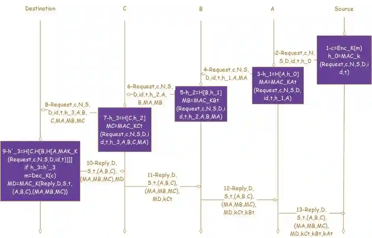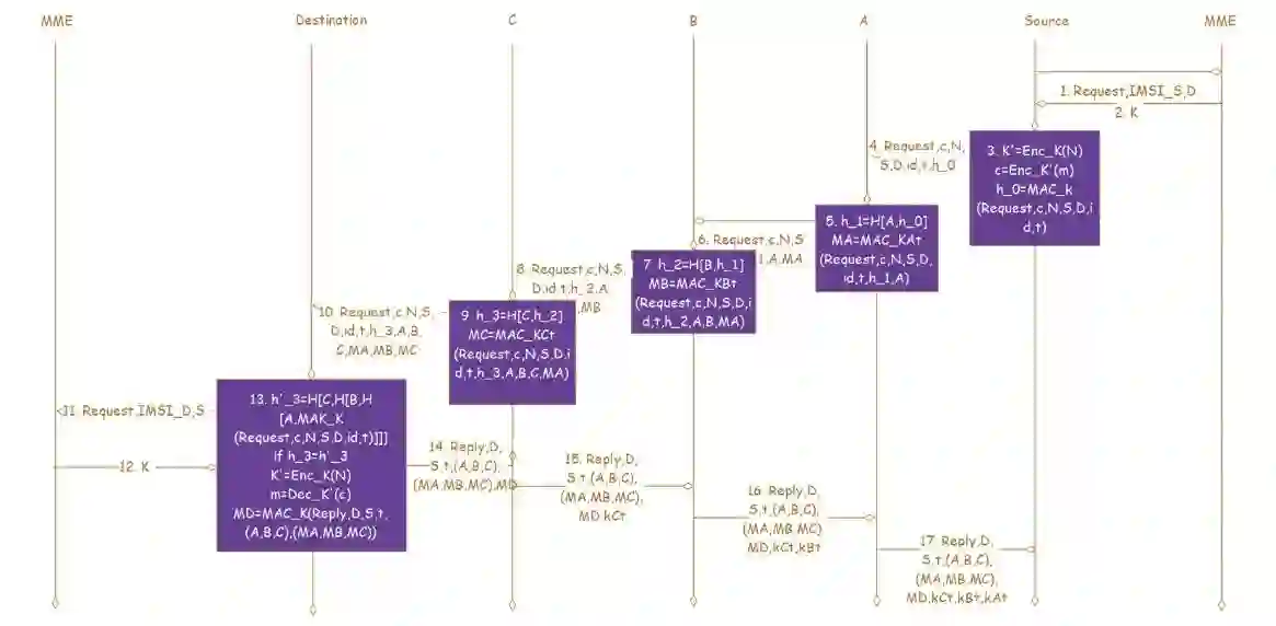 翻译:为了实现减少蜂窝流量和提高蜂窝网络效率这两个整体目标,D2D被认为是一个新的通信渠道,这种通信形式为第四代蜂窝通信引入了第四代蜂窝通信,并在第五代人中扮演了重要角色。参考资料中定义的四种D2D通信情景包括直接D2D和与不与蜂窝基础设施的D2D通信中继。解决D2D协议的主要挑战之一是它们有一个能够适应四种情景的单一安全协议。在本研究报告中,我们提议了基于ARIADNE的安全的D2D协议。我们使用LTE-A AKA协议认证源与目的地之间的关键协议,进一步用于中继节点TESLA之间的广播认证。与最近的协议相反,我们拟议的协议对管理费和微不足道的通信管理费进行了不可忽视的计算,并维护了许多安全特性,例如认证、授权、保密、完整性、完整性、安全性、安全密钥协议以及安全运行传输。我们用ProVerif核查工具检查了拟议协议的认证、保密性、可及安全性。