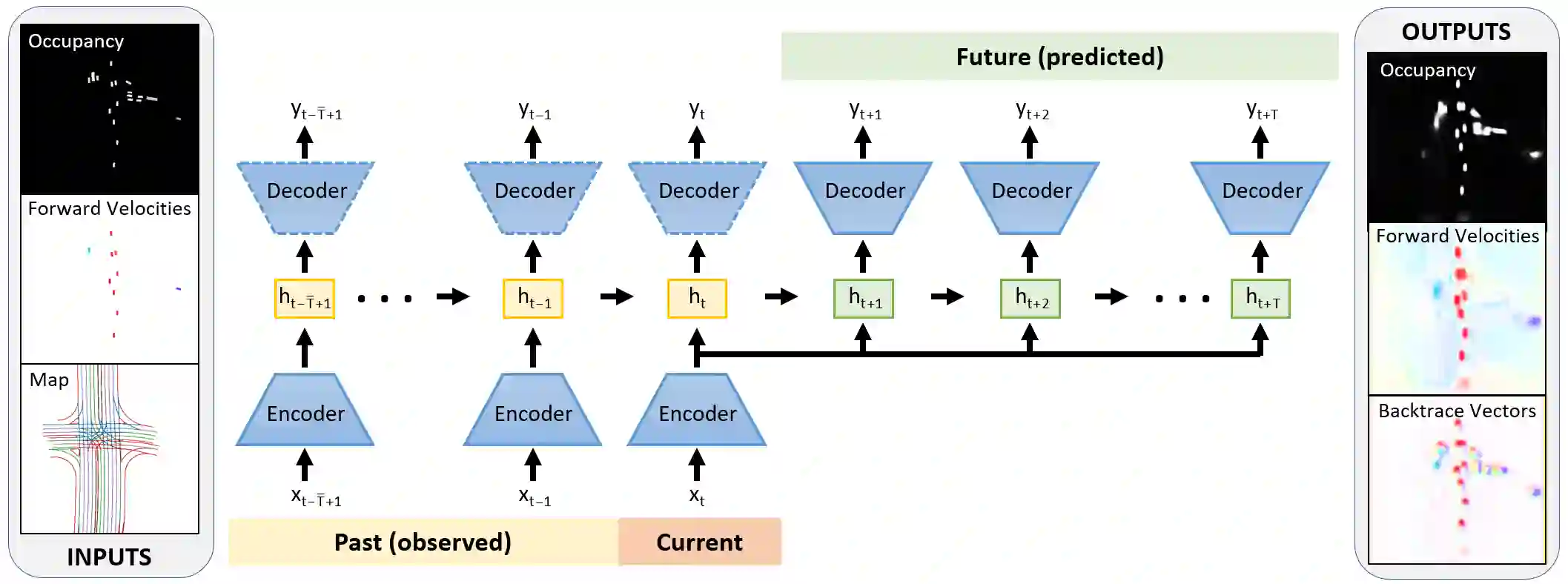 翻译:预测交通代理器的未来运动对于安全和高效自主驾驶至关重要。 为此,我们展示了SoundionNet,这是一个深度神经网络(DNN),它预测了周围所有交通代理器的动作以及自动汽车的动作。所有预测都是概率性的,并体现在一个简单的自上而下分层化中,它允许任意增加代理器的数量。在多层地图上设置了车道信息,网络产生未来位置、速度和回向矢量,所有代理器(包括在单关口的自动车辆)联合运行。然后从输出中提取轨迹。这个网络可以用来模拟现实的交通,并在大众基准上产生竞争性结果。更重要的是,它已经被用来成功地控制数百公里的真实世界车辆,将它与运动规划/控制子集成在一起。这个网络在嵌入的GPU上运行的速度比实时快,并且由于选择了输入代表,这个系统显示出良好的一般化(跨感应感模式和位置)。 此外,我们证明,通过扩大DNNW系统,可以像强化的磁场学习(RL),可以更好地处理。