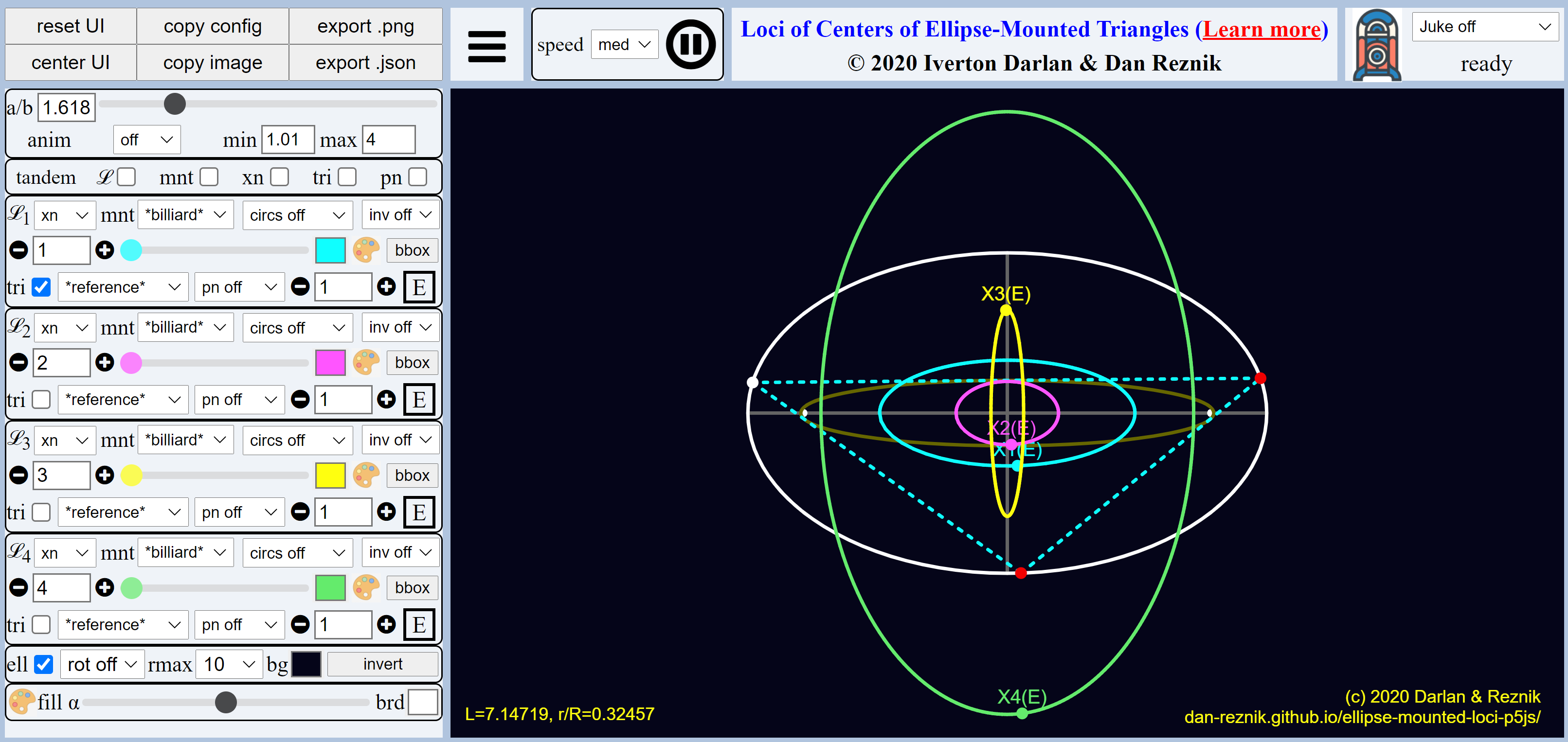 翻译:我们描述一个基于浏览器的应用程序,用于实时可视化庞斯莱三期家庭Boncelet 3-周期的美丽动态几何,重点是高度反应灵敏、视觉光滑、“实时”实验,实验涉及三角中心和(或)量性变异物的显地,另一个重点是制作美丽的彩色图像。一旦对基于浏览器的模拟进行定义,就可以很容易地与同事共享和(或)作为出版物的链接,从而不再需要费时的视频制作和上传。