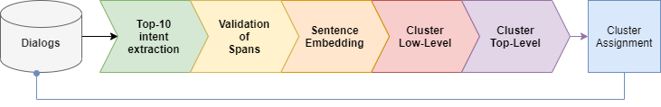 翻译:对于有客户服务的公司来说,在建立基于自然语言理解(NLU)的应用程序时,对谈话数据中的意图进行绘图至关重要。然而,没有固定的自动化技术来收集来自吵闹的在线聊天或语音记录誊本的意向。简单的集群方法不适合意向扭曲的对话。为了解决这一意向景观任务,我们建议建立一个不受监督的管道,从现实世界对话中提取意图和意图分类。我们的管道式地雷意图分布候选人,其开采式问题解答 Electra模型和杠杆句嵌入,以应用低密度集群,然后采用最高等级的等级集群。我们的结果表明,在SQuAD2数据集上对ELECTRA大型模型进行精细调整以了解对话的通用能力。在正确的问题下,该模型在意向方面实现了语言验证率超过85%。我们还从多多多戈多功能数据集中将五个域的意向方案重新组合,平均回收了94.3%。