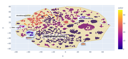 For companies with customer service, mapping intents inside their conversational data is crucial in building applications based on natural language understanding (NLU). Nevertheless, there is no established automated technique to gather the intents from noisy online chats or voice transcripts. Simple clustering approaches are not suited to intent-sparse dialogues. To solve this intent-landscape task, we propose an unsupervised pipeline that extracts the intents and the taxonomy of intents from real-world dialogues. Our pipeline mines intent-span candidates with an extractive Question-Answering Electra model and leverages sentence embeddings to apply a low-level density clustering followed by a top-level hierarchical clustering. Our results demonstrate the generalization ability of an ELECTRA large model fine-tuned on the SQuAD2 dataset to understand dialogues. With the right prompting question, this model achieves a rate of linguistic validation on intent spans beyond 85%. We furthermore reconstructed the intent schemes of five domains from the MultiDoGo dataset with an average recall of 94.3%.
