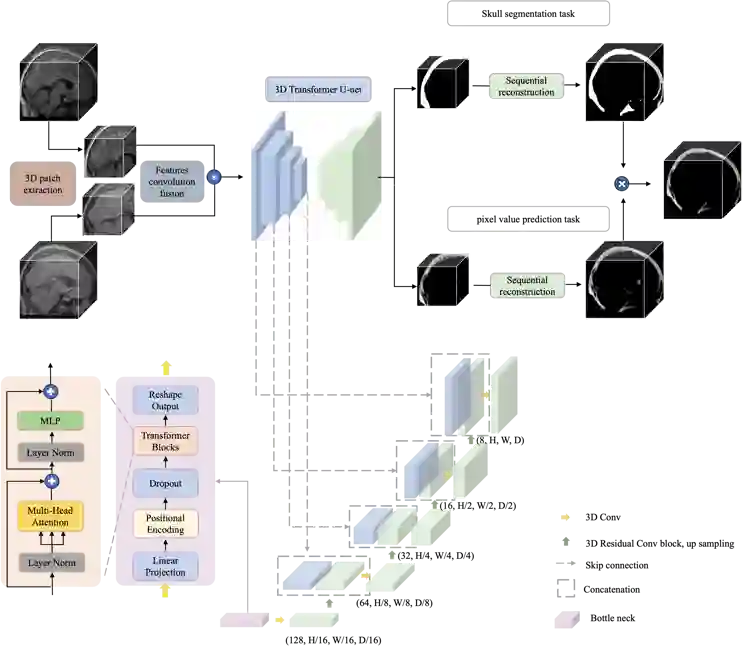 Image segmentation, real-value prediction, and cross-modal translation are critical challenges in medical imaging. In this study, we propose a versatile multi-task neural network framework, based on an enhanced Transformer U-Net architecture, capable of simultaneously, selectively, and adaptively addressing these medical image tasks. Validation is performed on a public repository of human brain MR and CT images. We decompose the traditional problem of synthesizing CT images into distinct subtasks, which include skull segmentation, Hounsfield unit (HU) value prediction, and image sequential reconstruction. To enhance the framework's versatility in handling multi-modal data, we expand the model with multiple image channels. Comparisons between synthesized CT images derived from T1-weighted and T2-Flair images were conducted, evaluating the model's capability to integrate multi-modal information from both morphological and pixel value perspectives.