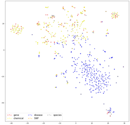 翻译:迄今为止,大多数神经退化性疾病都没有有效的治疗方法,但是,某些食物可能与这些疾病有关,并带来防止或推迟神经退化性发展的机会。我们的目标是利用文献挖掘研究神经退化性疾病与饮食的关系,以建立一个神经退化性疾病知识图。我们收集了4 300份出版物的摘要中与神经退化性疾病和饮食有关的生物医学说明(疾病、化学、基因、物种、SNP和Mutation)。 PubTator是一个由NIH支持的工具,可以从文献中提取生物医学概念。从这些说明中产生了一个知识图。然后,对图表嵌入者进行了“节点算法”培训,以支持潜在的概念组合和类似的概念识别。我们发现了一些可能来自饮食并对神经退化性疾病产生影响的与食物有关的物种和化学品。
