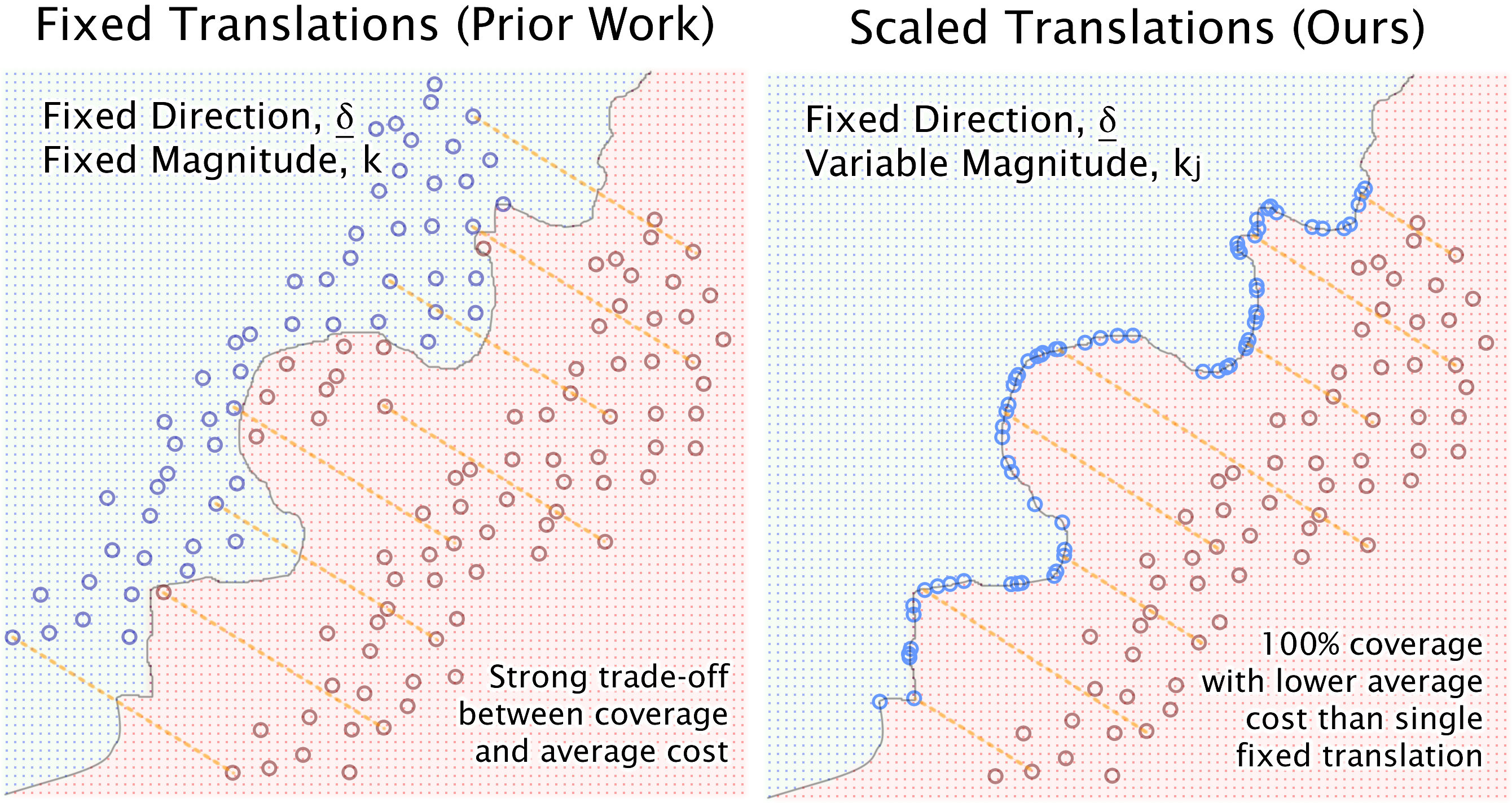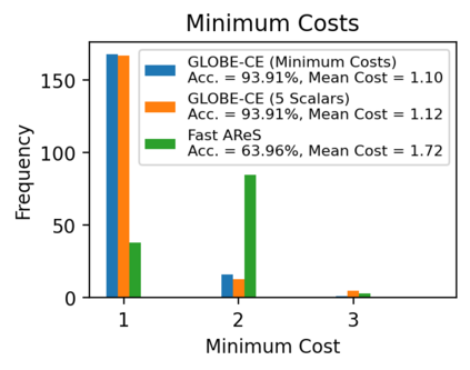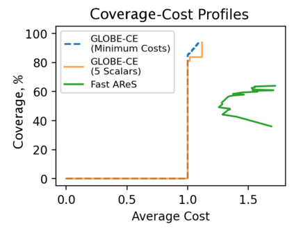 Counterfactual explanations have been widely studied in explainability, with a range of application dependent methods prominent in fairness, recourse and model understanding. The major shortcoming associated with these methods, however, is their inability to provide explanations beyond the local or instance-level. While many works touch upon the notion of a global explanation, typically suggesting to aggregate masses of local explanations in the hope of ascertaining global properties, few provide frameworks that are both reliable and computationally tractable. Meanwhile, practitioners are requesting more efficient and interactive explainability tools. We take this opportunity to propose Global & Efficient Counterfactual Explanations (GLOBE-CE), a flexible framework that tackles the reliability and scalability issues associated with current state-of-the-art, particularly on higher dimensional datasets and in the presence of continuous features. Furthermore, we provide a unique mathematical analysis of categorical feature translations, utilising it in our method. Experimental evaluation with publicly available datasets and user studies demonstrate that GLOBE-CE performs significantly better than the current state-of-the-art across multiple metrics (e.g., speed, reliability).