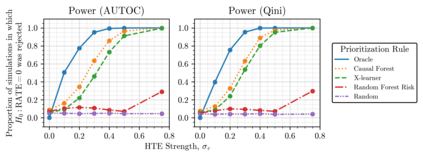 翻译:现有一些方法可用于选择哪些人优先治疗,包括基于治疗效果估计、风险评分和手工制作规则的方法。我们提出按级加权平均治疗效果(REATE)衡量标准,作为在公平竞争环境中比较治疗优先规则的简单和一般的衡量标准。REATE对如何得出优先排序规则是不可知的,只能根据它们如何成功地确定最能从治疗中受益的单位来评估这些方法。我们定义了REATE测算员的大家庭,并证明了一个中心限值,能够在各种随机和观察性研究环境中进行无症状精确的推断。我们提出了使用按级加权平均平均平均平均治疗效果(RETE)衡量标准的理由,并提出了一个框架,用以测试治疗效率差异性规则的假设与优先规则相关。我们对RATE的定义将现有的一些衡量标准,包括Qini系数,以及我们的分析直接得出这些衡量标准的推断方法。我们从个人化医学和营销中提取的一些例子中展示了我们的方法。在医学定位和市场营销过程中,我们用大量的数据来证明,我们从SARBA测试中所使用的大量数据。