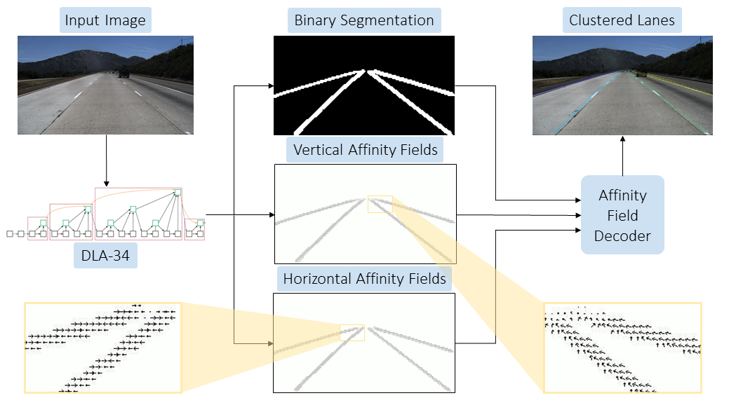 翻译:这项研究提出了一种对车道探测方法,包括预测二元分解面罩和双像体亲近场。这些近似场加上二元面罩可以用来将车道像素横向和垂直地分组成一个后处理步骤的相应车道情况。这种集群是通过简单的逐行解码过程实现的,而几乎没有间接费用;这种方法使LaneAF能够在不假定固定或最大车道数的情况下探测多条车道。此外,与以往的视觉集束方法相比,这种集群形式更容易解释,可以分析出错源。流行车道探测数据集取得的定性和定量结果显示了该模型能够有效和稳健地探测和分组车道。我们提议的办法与关于有限托斯伯基准的先进方法相当,并在具有挑战性的CURane数据集上设置新的最新技术。