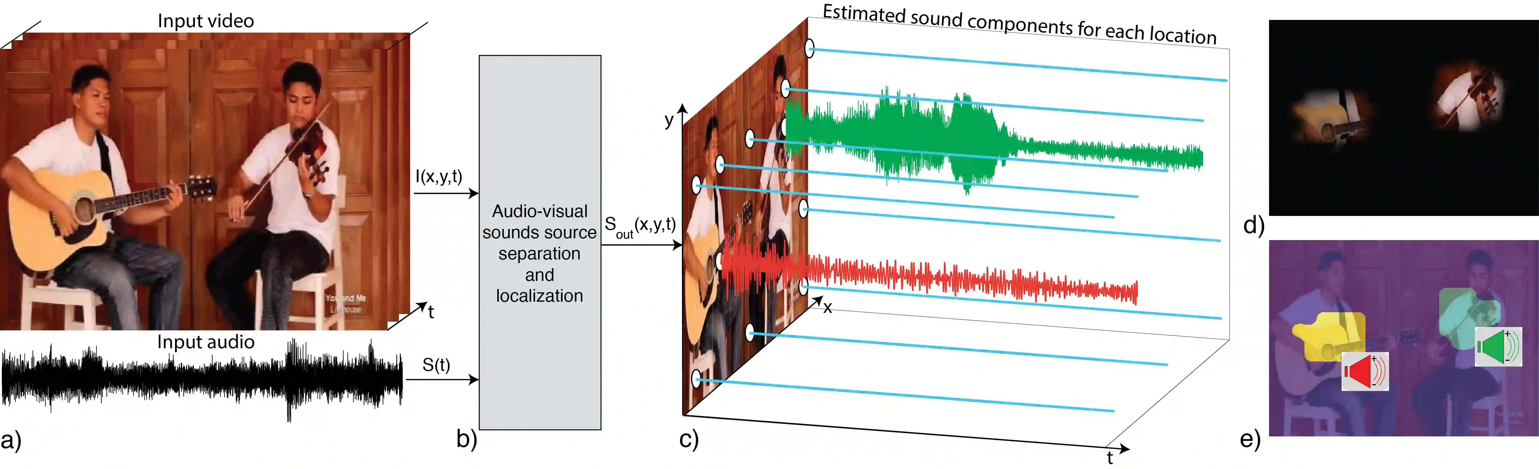 翻译:我们引入了像素Player, 该系统通过利用大量未贴标签的视频, 学会定位生成声音的图像区域, 并将输入的声音分离成代表每个像素声音的一组组件。 我们的方法利用视觉和音频模式的自然同步性来学习联合分析声音和图像的模型, 而不需要额外的人工监督。 新收集的 Mix- Sparate 数据集的实验结果显示, 我们提议的 Mix- sparate 框架在源分离上优于几个基线。 定性结果显示, 我们的模型学会将声音定位在视觉中, 使应用能够独立调整声音源的数量等。