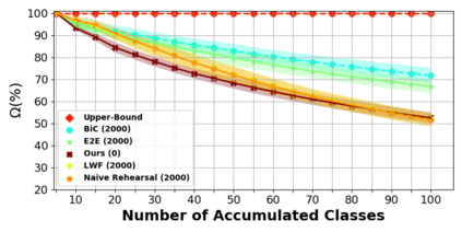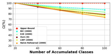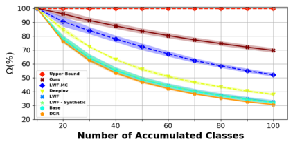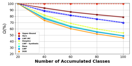 翻译:在逐渐学习新概念时,现代计算机视觉应用会遭受灾难性的遗忘。 减轻这种忘却的最成功方法要求大量重现先前看到的数据,而当记忆限制或数据合法性问题存在时,这是问题所在。 在这项工作中,我们考虑到无数据类强化学习(DFCIL)这一影响较大的问题,在这个问题上,一个递增的学习代理机构必须长期学习新概念,而不必储存发电机或从过去的任务中培训数据。 DFCIL的一个方法是重新播放通过反转一个冷冻的学习者分类模型复制出来的合成图像,但我们显示,在使用标准蒸馏战略时,这个方法对于共同的类级强化基准来说是失败的。我们诊断了这一失败的原因,并为DFCIL提出了一个全新的递增精益化战略,贡献了经过修改的跨热带培训和重要性加权特征蒸馏,并表明我们的方法的结果是,与SOTA DFCIL 通用分类基准方法相比,最终任务准确度(绝对差异)增加了25.1%。我们的方法甚至比一些基于标准重置图像的重置法。