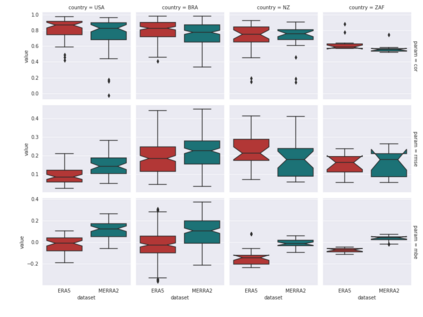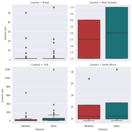 翻译:重新分析数据被广泛用于模拟可再生能源,特别是风能发电。虽然MERA-2在许多研究中已成为一个不实际的标准,但最新的ERA5重新分析最近也变得重要。在这里,我们利用这两个数据集模拟风力发电,并评估在与历史风能发电相比验证时各自在关联和错误方面的质量。然而,由于其空间分辨率粗略,再分析未能充分反映当地气候条件。因此,我们进一步运用了两个版本的全球风力图(GWA)的偏差纠正,并评估了相应的模拟质量。数据集的潜在用户也可以从我们对模拟质量指标的空间和时间汇总影响的分析中受益。虽然进行了类似的研究,但主要覆盖欧洲的有限地区。相比之下,我们考察各区域,这些区域在普遍气候方面差异很大:美国、巴西、南非和新西兰。我们的主要结论是:(i) ERA5超越了MERA-2,因此评估了相应的模拟质量。(ii) 数据集的潜在用户也可以从我们对模拟质量和时间汇总对模拟质量的影响进行的分析中受益。虽然全球气象数据系统2的数值不断降低,但全球航空的比值却不断降低。