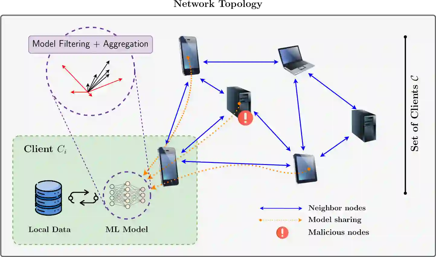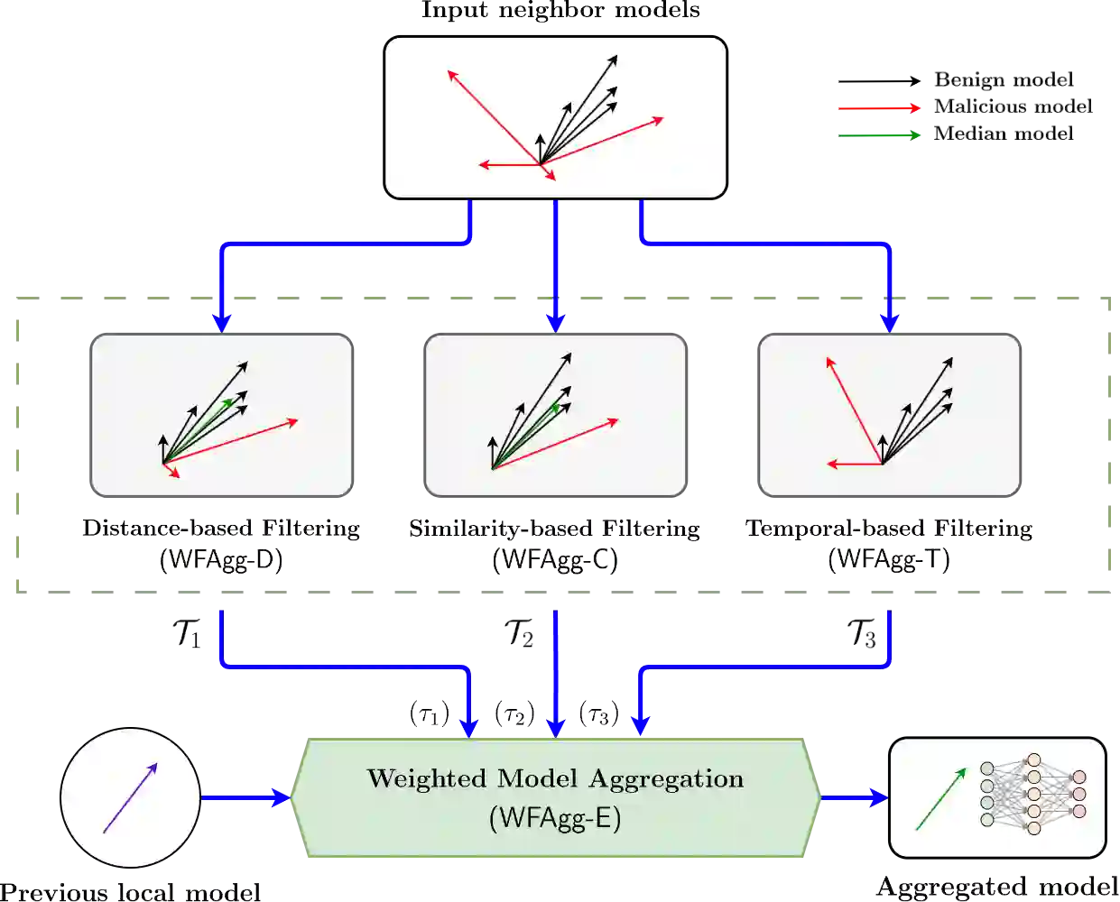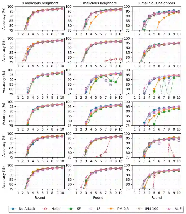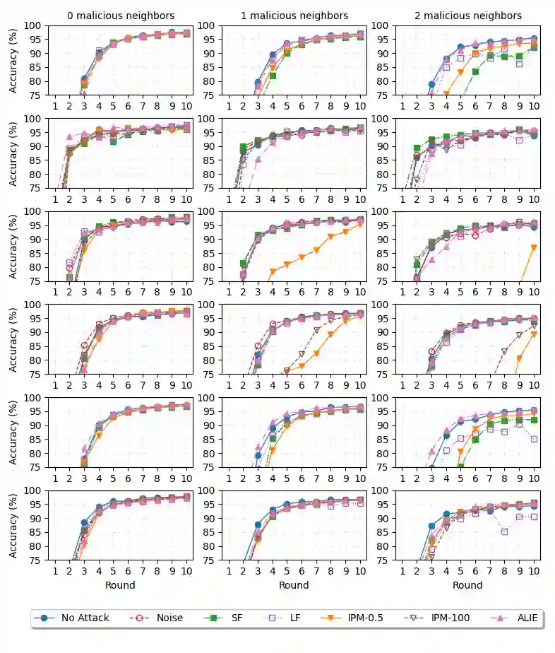 Federated Learning (FL) emerges as a distributed machine learning approach that addresses privacy concerns by training AI models locally on devices. Decentralized Federated Learning (DFL) extends the FL paradigm by eliminating the central server, thereby enhancing scalability and robustness through the avoidance of a single point of failure. However, DFL faces significant challenges in optimizing security, as most Byzantine-robust algorithms proposed in the literature are designed for centralized scenarios. In this paper, we present a novel Byzantine-robust aggregation algorithm to enhance the security of Decentralized Federated Learning environments, coined WFAgg. This proposal handles the adverse conditions and strength robustness of dynamic decentralized topologies at the same time by employing multiple filters to identify and mitigate Byzantine attacks. Experimental results demonstrate the effectiveness of the proposed algorithm in maintaining model accuracy and convergence in the presence of various Byzantine attack scenarios, outperforming state-of-the-art centralized Byzantine-robust aggregation schemes (such as Multi-Krum or Clustering). These algorithms are evaluated on an IID image classification problem in both centralized and decentralized scenarios.