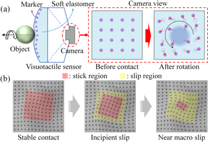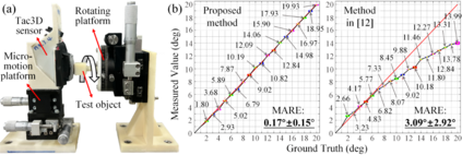 In typical in-hand manipulation tasks represented by object pivoting, the real-time perception of rotational slippage has been proven beneficial for improving the dexterity and stability of robotic hands. An effective strategy is to obtain the contact properties for measuring rotation angle through visuotactile sensing. However, existing methods for rotation estimation did not consider the impact of the incipient slip during the pivoting process, which introduces measurement errors and makes it hard to determine the boundary between stable contact and macro slip. This paper describes a generalized 2-d contact model under pivoting, and proposes a rotation measurement method based on the line-features in the stick region. The proposed method was applied to the Tac3D vision-based tactile sensors using continuous marker patterns. Experiments show that the rotation measurement system could achieve an average static measurement error of 0.17 degree and an average dynamic measurement error of 1.34 degree. Besides, the proposed method requires no training data and can achieve real-time sensing during the in-hand object pivoting.