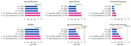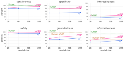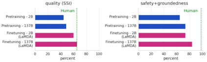 翻译:我们介绍LAMDA: 用于对话应用的语言模型。 LaMDA是一个以变异器为基础的神经语言模型,专门用于对话,有多达137B参数,并事先接受了关于公共对话数据和网络文本1.56T字的培训。模型的升级单能提高质量,但在安全和事实依据方面则显示改进较少。我们证明,用附加说明的数据进行微调,并使模型能够咨询外部知识来源,可以大大改进安全和事实基础这两个关键挑战。第一个挑战是安全,确保模型的反应符合一套人类价值观,例如防止有害的建议和不公平的偏差。我们用一套说明性人类价值观的衡量标准量化安全性,我们发现,使用拉MDA分类器精细调整了安全和事实依据,筛选候选人的答复,提供了改善模型安全的有希望的方法。第二个挑战是事实基础,使模型能够咨询有益的外部知识来源,如信息检索系统、语言翻译和计算师。我们用一个基于人类价值观的衡量标准衡量质量的衡量标准,我们用一个基于基础的模型来量化事实质量,我们用一个基础的衡量和正确无误的统计方法来得出我们最后的学习的教学结果。