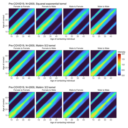 翻译:自严重急性急性呼吸系统综合症冠状病毒2(SARS-COV-2)出现以来,已经进行了许多接触调查,以衡量面对流行病和非药物性干预措施时人类相互作用的变化。这些调查通常是纵向的,采用不同于流行前时代的规程。我们提出了一个基于模型的统计方法,可以在1年的分辨率上重建接触模式,即使接触年龄被粗略地报告为5岁或10岁年龄组。这种创新的根源在于人口水平的连贯性限制,即群体之间接触必须如何增加,这促使我们调用这里提出的巴伊西亚州汇率一致性模型。这些模型通常采用计算高效的Hilbert Space Gausian程序,在推断年龄和性别结构社会接触的动态之前,我们提出了一种基于模型的统计方法,可以根据接触年龄粗略地用5岁或10岁来重建接触模式。我们从以足够准确和完全巴伊斯为基框架的粗略数据来量化不确定性。我们调查了在Bayeseral Instital Procial-lax lax lax lax lax s requistal constal laction lader rem remal laction dal laction dal laction laction dal laction laction ex ex laveal dal laction.我们调查在德国在4月5 4月 4月 4月 4月 和在社会接触结构中收集到2020年7月中的社会接触的早期分析了社会接触的早期分析方法展示了社会接触。