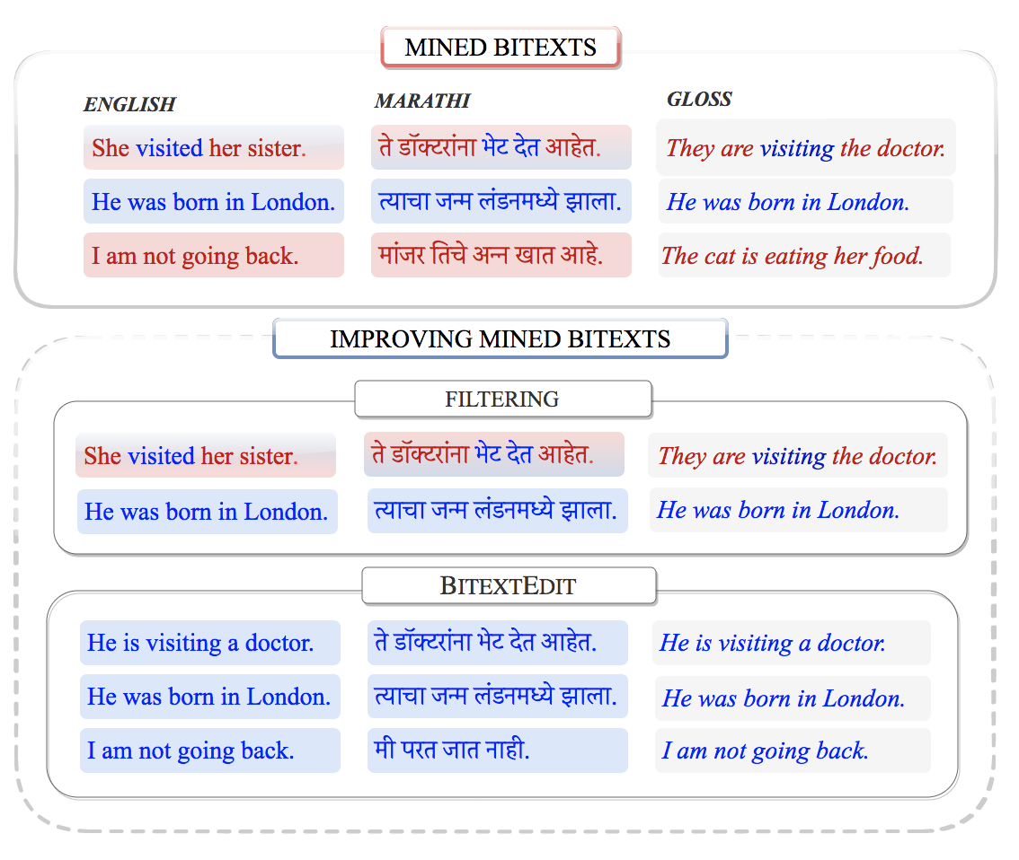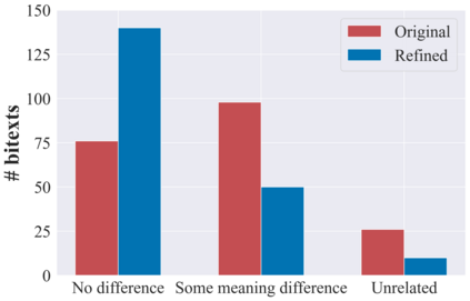 翻译:被开采的位元体可以包含不完善的翻译,为神经机器翻译(NMT)产生不可靠的培训信号。 虽然过滤这些配对可以提高最终模型质量,但我们认为,在低资源条件下,即使雷区数据也受到限制,这是不理想的。 在我们的工作中,我们提议通过自动编辑来改进被开采的位元体:用一种语言xf给一个句子,并且可能不完美的翻译 xe,我们的模型产生一个修订版 xf 或 xe,产生一个更等效的翻译配对(即 < xf, xe 或 < xf', xe )。 我们使用简单的编辑战略, (1) 在给定的位数中挖掘每个句子的潜在不完善的翻译, (2) 学习一个模型来重建原始翻译,并以多种方式翻译。 实验表明,我们的方法成功地提高了5种低资源语言版面和10个翻译方向的CMatrix比特的质量, 最高可达~ 8 BLEU 点。