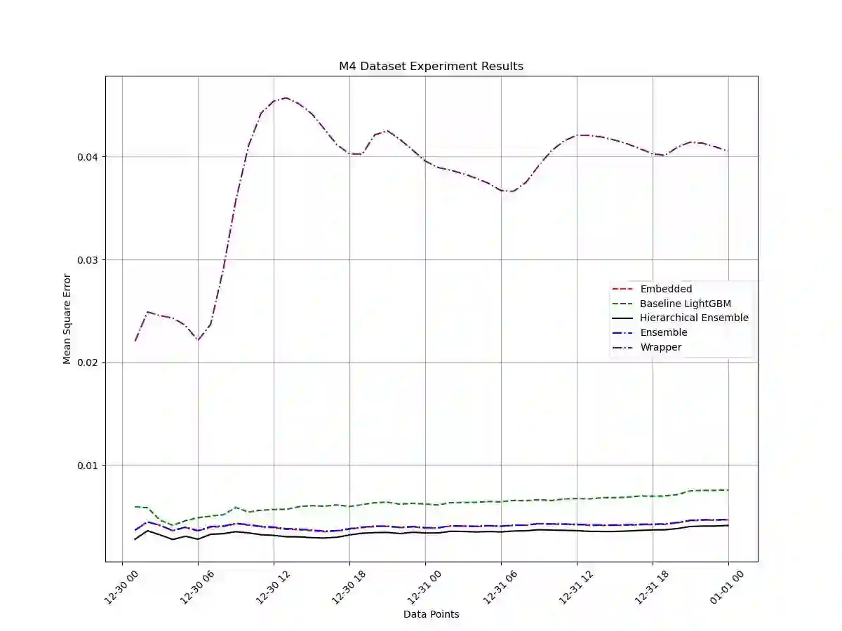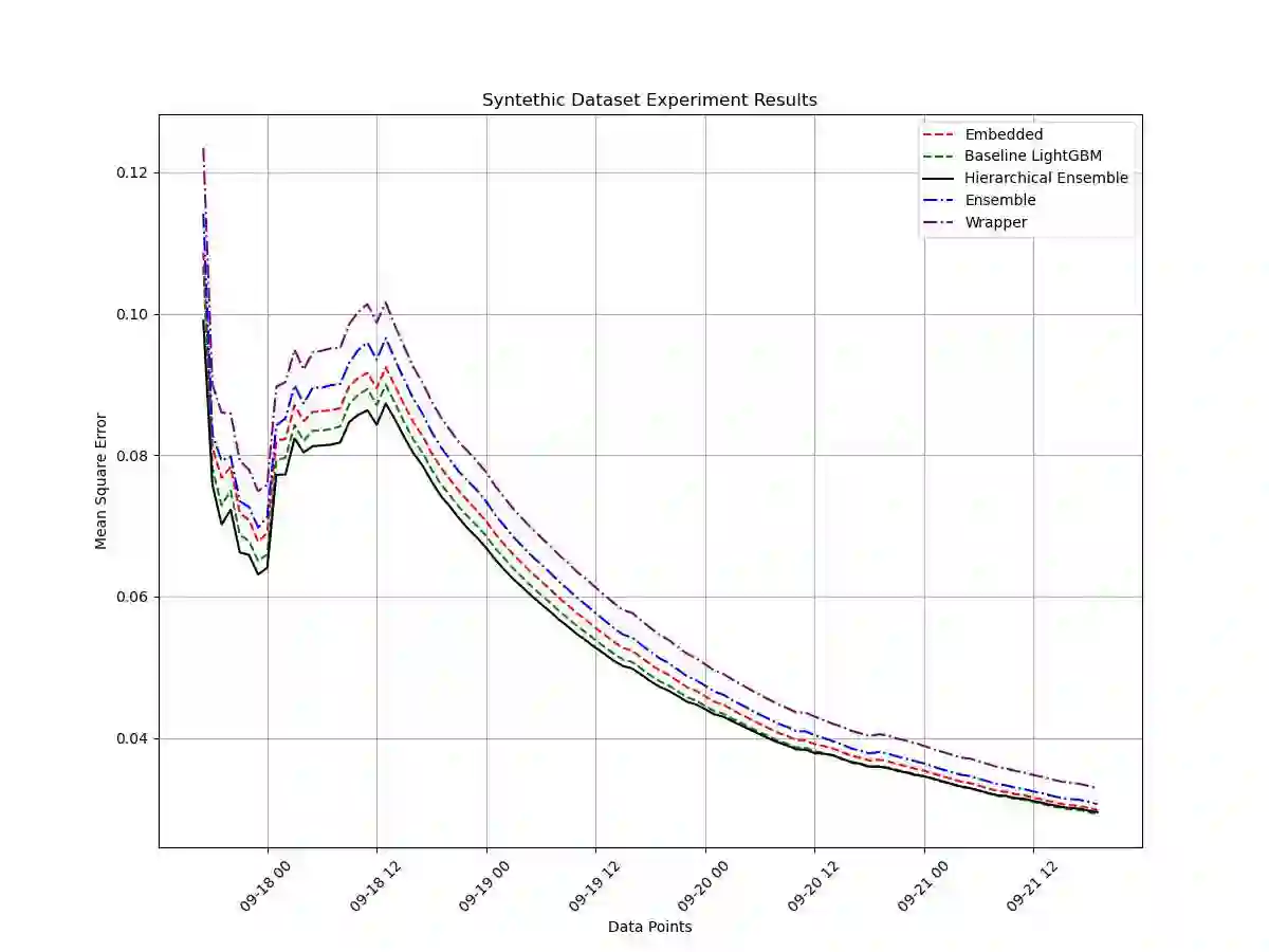 We study a novel ensemble approach for feature selection based on hierarchical stacking in cases of non-stationarity and limited number of samples with large number of features. Our approach exploits the co-dependency between features using a hierarchical structure. Initially, a machine learning model is trained using a subset of features, and then the model's output is updated using another algorithm with the remaining features to minimize the target loss. This hierarchical structure allows for flexible depth and feature selection. By exploiting feature co-dependency hierarchically, our proposed approach overcomes the limitations of traditional feature selection methods and feature importance scores. The effectiveness of the approach is demonstrated on synthetic and real-life datasets, indicating improved performance with scalability and stability compared to the traditional methods and state-of-the-art approaches.