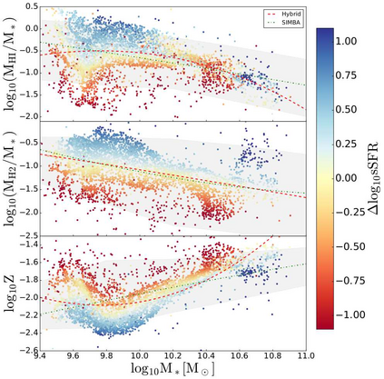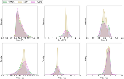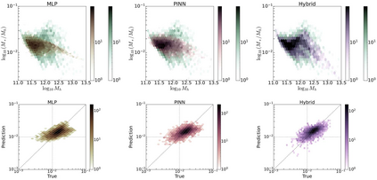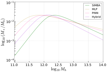 Physics-informed neural networks have emerged as a coherent framework for building predictive models that combine statistical patterns with domain knowledge. The underlying notion is to enrich the optimization loss function with known relationships to constrain the space of possible solutions. Hydrodynamic simulations are a core constituent of modern cosmology, while the required computations are both expensive and time-consuming. At the same time, the comparatively fast simulation of dark matter requires fewer resources, which has led to the emergence of machine learning algorithms for baryon inpainting as an active area of research; here, recreating the scatter found in hydrodynamic simulations is an ongoing challenge. This paper presents the first application of physics-informed neural networks to baryon inpainting by combining advances in neural network architectures with physical constraints, injecting theory on baryon conversion efficiency into the model loss function. We also introduce a punitive prediction comparison based on the Kullback-Leibler divergence, which enforces scatter reproduction. By simultaneously extracting the complete set of baryonic properties for the Simba suite of cosmological simulations, our results demonstrate improved accuracy of baryonic predictions based on dark matter halo properties, successful recovery of the fundamental metallicity relation, and retrieve scatter that traces the target simulation's distribution.