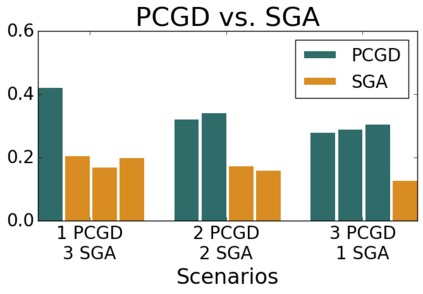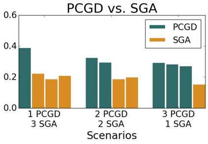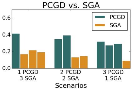 翻译:许多经济游戏和机器学习方法可被看成是竞争性优化问题,在这种情况下,多种代理机构正在最大限度地降低其各自的客观功能,这取决于所有代理机构的行动。虽然梯度下降是单一代理机构优化的可靠基本工作马匹,但往往会在竞争优化中导致振动。在这项工作中,我们提议多式矩阵竞争性梯度下降(PCGD),作为解决涉及任意数个代理机构的一般性和竞争性优化的方法。我们的方法的更新是以四面形正规化的当地多面体近似的纳什平衡方式获得的,并且可以通过解决直线方程系统来有效计算。我们证明PCGD与美元玩家普通和普通游戏的稳定固定点在当地趋同,并表明它不需要根据玩家互动行动的力量调整步数。我们使用PCGD来优化多面强化学习的政策,并展示其在蛇、Markov足球和电力市场游戏中的优势。由PCGDD外形剂培训的代理机构通过同时梯度下降、随机梯度调整以及蛇与Markov足球运动的超高位化方法培训。