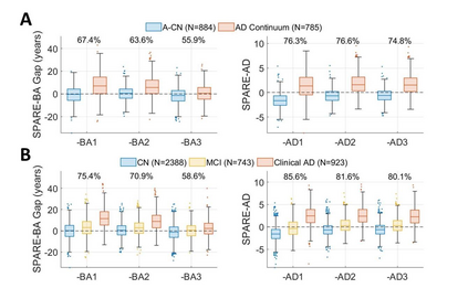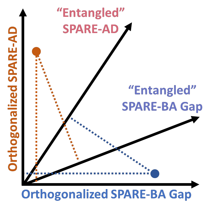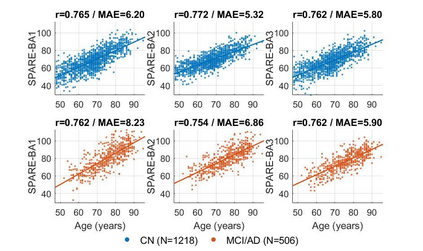 翻译:将典型的大脑老化和阿尔茨海默氏病(AD)区分开来的生物标志中,将典型的大脑老化和阿尔茨海默氏病(AD)区分开来,对于确定每种疾病对认知下降的贡献有多大是有价值的。机器学习模型可以得出与这两个过程有关的多变大脑变化模式,包括SAPARE-AD(承认阿尔茨海默氏病的萎缩模式)和SPARE-BA(大脑进化)所有调查。然而,在两个过程中受影响的大脑区域之间有很大的重叠,我们展示了一种方法来分解这两种疾病。T1加权的MRI图像,4 054参与者(48-95岁)的T1加权MRI图像(48-95岁),有AD、轻度认知障碍(MCI)的大脑变化模式,或认知正常的 iSTAGA(以STem 和NAAAAAA(亚纳亚士亚士亚氏)的货币和SAAA(AAAAAAA)的亚运和AAAAAAAAAAA(进化)类和AAAAAAAAAAAAAAA(亚纳基)的肝和AAAA和AAAAAAAA(基)的肝和AAAAAAAA(基)的肝和AAA(基)的肝和AAAAAAAAAAA(基)的分级的分数的分数组,选择的分数组的肝和A和AAAAAAAAA)的分数(基)的分数组的分数)的分数组,选择的分。的分。和A,选择组和AA)的分的分数组的分。。