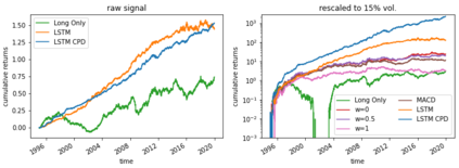 翻译:动力值战略是替代投资的重要组成部分,是商品交易顾问(CTAs)的核心。然而,这些战略被认为难以适应市场条件的快速变化,例如2020年市场崩溃期间。特别是,在势头转折点后,趋势从上升趋势(下降趋势)转向下降趋势(上升趋势),时间序列动力(TSMOM)战略容易做出错误的赌注。为了改进对制度变化的反应,我们引入了一种新颖的方法,即我们将一个在线改变点检测模块(CPD)纳入深动力网络(DMN) [1904.04912] 管道,该平台使用LSTM深度学习架构同时学习趋势估计和定位。此外,我们的模型能够优化它平衡速度缓慢的策略,它利用了持续趋势,但并没有对地方化的价格变动做出过快反应,2 一个快速的中位反向战略体系,它迅速翻转,然后再次将它转换回到50度网络(DMNM) [1904.4912] 管道,它使用LSTM的深度学习架构,同时学习趋势估计和定位。此外,我们的DA模模模模模值在1990年逐渐改变。