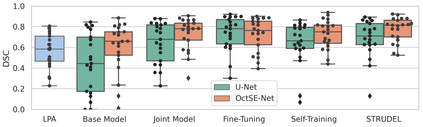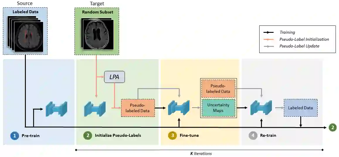翻译:我们建议对白色物质高密度分解采用不受监督的域适应(UDA)方法,该方法使用不确定分解法进行自我培训,对不确定分解器进行精密的标签改进(STRUDEL),自我培训最近被引入为UDA的一种非常有效的方法,该方法以自我产生的假标签为基础,但假标签可能非常吵闹,因而使模型性能恶化。我们提议预测假标签的不确定性,并将假标签纳入培训过程,同时具有不确定性引导损失功能,以高度肯定地突出标签。STRUDEL通过将现有方法的分解输出纳入假标签生成中,显示出对WMH分解法的高度稳健度,从而进一步改进。在我们的实验中,我们用标准的U-Net和经过改造的网络对STRUDEL进行了评估,用较高的可接受域进行了修改。我们关于跨数据集的WMH分解结果显示STRUDEL在标准自我培训方面的重大改进。