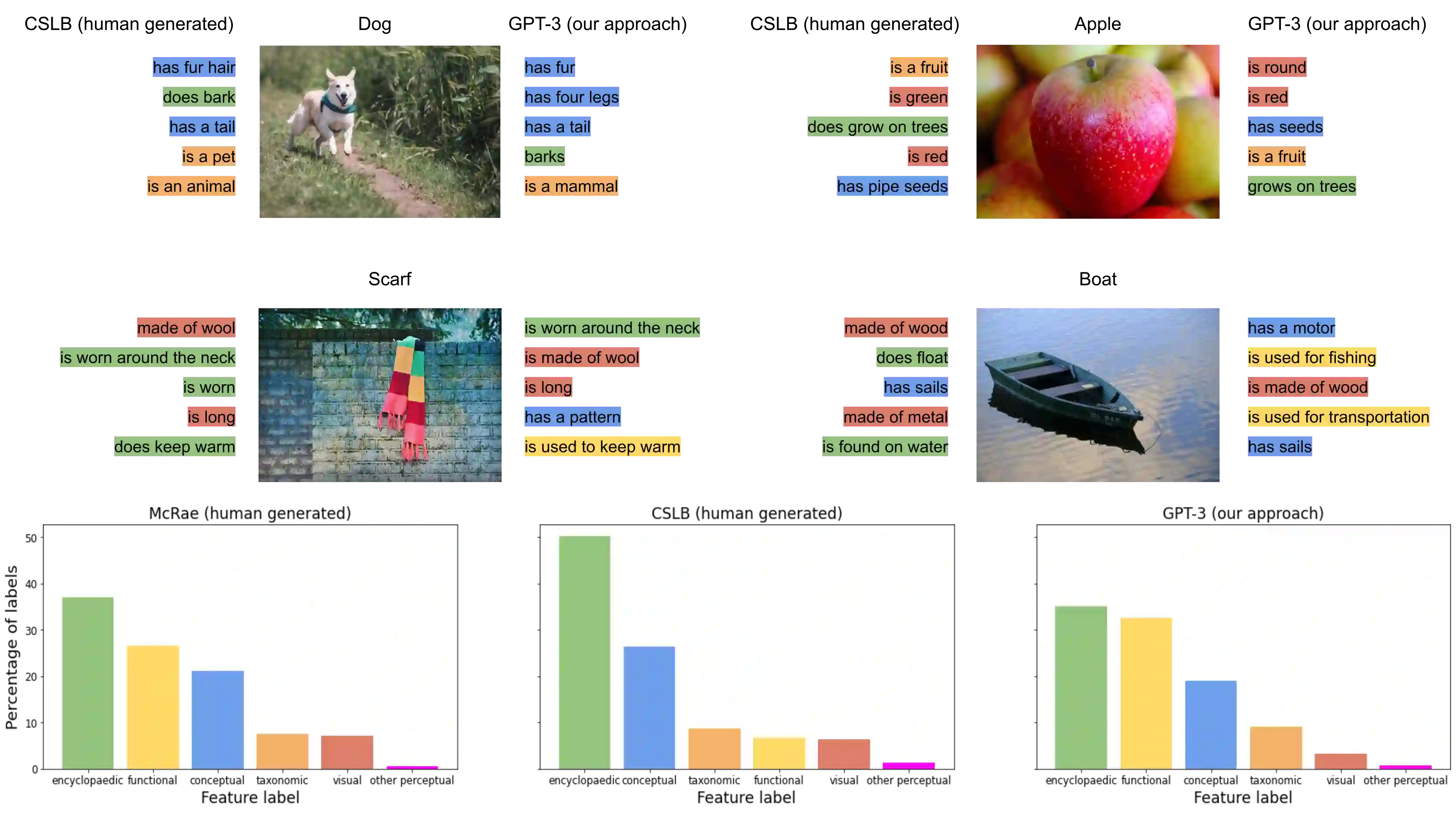 翻译:语义特征在调查我们概念表述的性质方面一直发挥着核心作用。然而,人类标本器的经验抽样和规范特征所需要的大量时间和努力限制了其使用,将其限制在有限的一组人工整理概念上。鉴于以变压器为基础的语言模型最近出现的有希望的发展动态,我们在这里询问是否有可能使用这些模型自动生成任意物体概念的有意义的属性清单,以及这些模型是否会产生与人类所发现的特征相类似的特征。为此,我们探索了一种GPT-3模型,为1,854个物体生成语义特征,并将自动生成的特征与现有人类特征规范进行比较。GPT-3生成了比人类更多的特征,但在生成的特征类型中却显示出类似的分布分布。生成的特征规范在预测相似性、关联性和类别成员构成方面与人类规范相匹配,而差异分布表明这些预测是由人类和GPT-3的类似差异驱动的。这些结果突出表明,大型语言模型有可能捕捉人类知识的重要方面,并产生可自动生成的特征数据集的新方法,从而极大地扩展了在心理和语言研究中使用语义特征方面的潜力。
