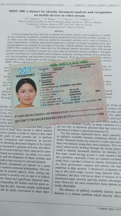 翻译:身份文件的识别是文件分析的一个重要领域,涉及的文件分析的一个重要领域,涉及的文件检测、类型识别、文本字段识别以及身份欺诈预防和文件真实性验证等任务,涉及身份文件捕获的照片、扫描或视频框架,近年来已就这一专题发表了大量研究,然而,这种研究的主要困难是缺乏数据集,因为主题事项受安全要求保护,因此缺少数据集;一些身份文件数据集缺乏文件类型多样性、记录条件或文件字段值的变异性;此外,公布的数据集通常仅设计为文件识别问题的一部分,而不是复杂的身份文件分析。在本文件中,我们提供了由1000个视频剪辑、2000个扫描图像和1000个独特的模拟身份证件照片组成的数据集MIDV-2020,每个文件都有独特的文本字段价值和独特的人工生成的面貌,并附有丰富的说明;对于文件位置和识别、文本字段识别和面检测等任务提供了基准数据集的基线。在总共72409个附加注释的图像中,直到公布日期为止,我们提供了一份可变的、可变的、可变的、可变的、可变的、可变的、可变的、可变的、可变的、可变的、可变的、可变的、可变的、可变、可变的、可变的、可变的、可变的、可变的、可变的、可变的、可变的、可的、可变、可变的、可变的、可变的、可变的、可变的、可的、可变的、可的、可变、可变、可变、可的、可的、可的、可变、可的、可变、可的、可的、可的、可的、可的、可的、可的、可的、可的、可的、可的、可的、可的、可的、可的、可的、可的、可的、可的、可的、可的、可的、可的、可的、可的、可的、可的、可的、可的、可的、可的、可的、可的、可的、可的、可的、可的、可的、可的、可的、可的、可的、可的、可的、可的、可的、可的、可的、可的、可的、可