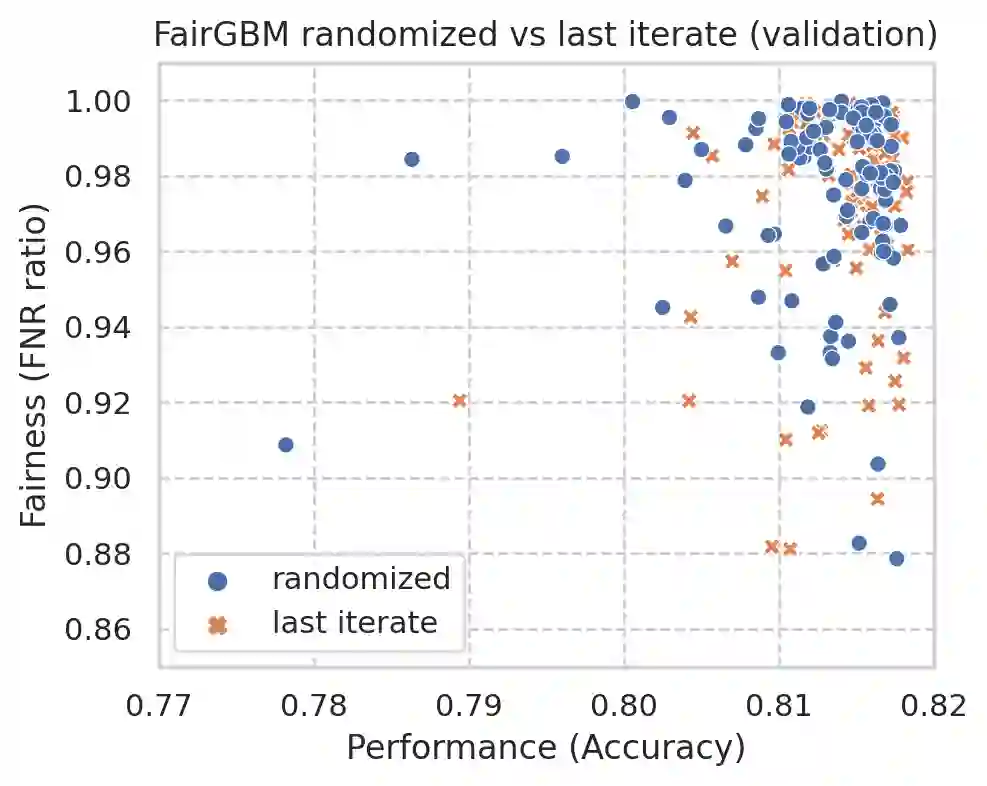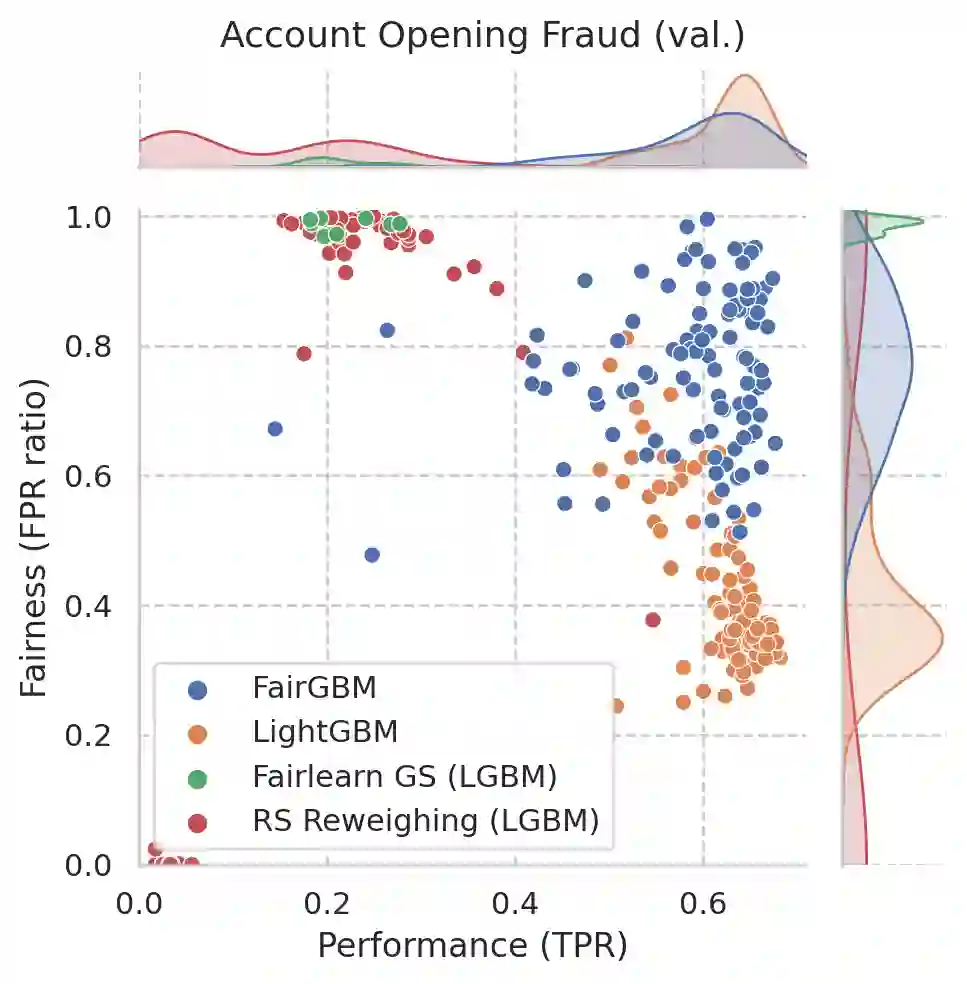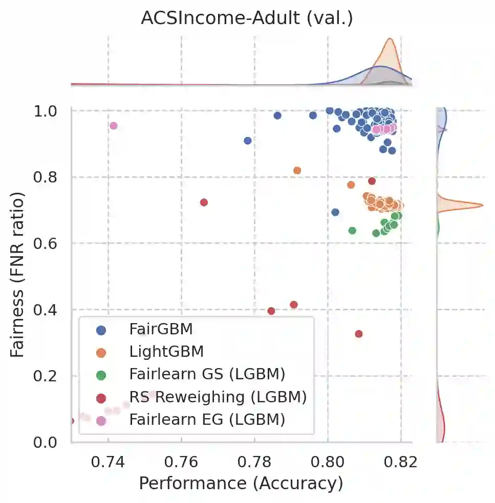 翻译:基于梯度提升决策树(GBDT)的机器学习(ML)算法仍然有利于从保健到金融等各种任务关键应用的许多表格数据任务,然而,GBT算法并非没有偏见和歧视性决策的风险。尽管GBDT的受欢迎程度和公平ML研究的快速步伐,但现有的处理中公平ML方法要么不适用于GBDT,引起大量的培训时间管理,或者不足以解决高等级不平衡的问题。我们提出了FairGBM,这是一个在公平限制下培训GBD的学习框架,与不受限制的LightGBM相比,对预测性能的影响很小,几乎没有影响任何影响。由于通用的公平指标是不可区别的,我们采用“proxy-Lagrangian”的配方,使用光滑的convex误率准轴来进行梯度优化。此外,我们的开放源实施显示培训时间与相关工作相比有一定的强度加速度,这是促进现实世界从业人员广泛采用FairGBM的关键问题。