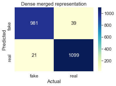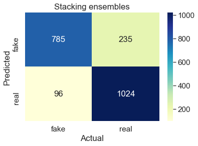 Identification of Fake News plays a prominent role in the ongoing pandemic, impacting multiple aspects of day-to-day life. In this work we present a solution to the shared task titled COVID19 Fake News Detection in English, scoring the 50th place amongst 168 submissions. The solution was within 1.5% of the best performing solution. The proposed solution employs a heterogeneous representation ensemble, adapted for the classification task via an additional neural classification head comprised of multiple hidden layers. The paper consists of detailed ablation studies further displaying the proposed method's behavior and possible implications. The solution is freely available. \url{https://gitlab.com/boshko.koloski/covid19-fake-news}