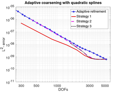 In this article we analyze the error produced by the removal of an arbitrary knot from a spline function. When a knot has multiplicity greater than one, this implies a reduction of its multiplicity by one unit. In particular, we deduce a very simple formula to compute the error in terms of some neighboring knots and a few control points of the considered spline. Furthermore, we show precisely how this error is related to the jump of a derivative of the spline at the knot. We then use the developed theory to propose efficient and very low-cost local error indicators and adaptive coarsening algorithms. Finally, we present some numerical experiments to illustrate their performance and show some applications.