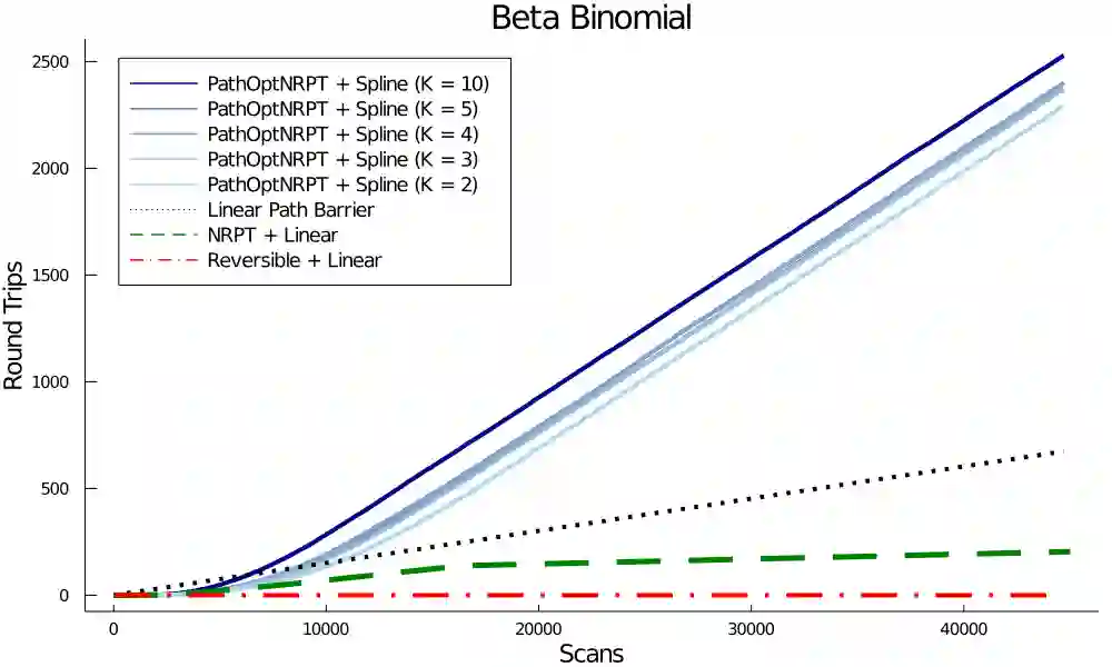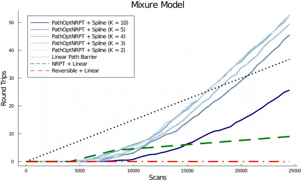 翻译:平行色调( PT) 是马可夫连锁 Monte Carlo 算法的一类, 它在可移植引用和目标之间构建了一条分布路径, 在可移植引用和棘手的目标之间形成一条透射路径, 然后交换会指出改善目标中混合的路径。 PT 的性能取决于引用分布的样本到目标的速度, 而这反过来又取决于肛交分布的特定路径。 但是, 过去关于 PT 的工作只使用了从引用和目标日志密度的曲线组合中构建的简单路径。 本文首先展示了这条路径在参考和目标几乎相互一致的设置中表现不佳。 为了解决这个问题, 我们把 PT 框架扩展至路径的普通组别, 将路径的选择设计成一个允许可移动梯度估计的优化问题, 并提出一个灵活的新链条内插图, 供实践使用。 理论和实证结果都表明, 我们拟议的方法打破了传统路径先前设定的高级性能限制 。