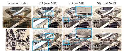 翻译:3D 场景Stylization 旨在根据一组特定风格示例的任意新视角生成场景的立体图像, 并确保从不同观点获得一致性。 直接将图像或视频Styliz化方法应用到 3D 场景无法实现一致性。 由于最近提议的神经光亮场( NeRF), 我们能够以一致的方式代表三D 场景。 一致的三D 场景Styliz化可以通过对相应的 NeRF 进行立体格式化来有效实现。 但是, 2D 图像和 NeRF 等样式示例之间有很大的域域域间差异, 而 NeRF 则是隐含体型格式的表达方式。 为了解决这个问题, 我们建议为 3D 场景图像Stylorization 直接应用一个全新的相互学习框架Stylder Stylorization 格式的演示框架, 并且我们从Sylvildalalal dismal 开始引入了我们内部规则的高级规则, 也通过Sylviolvial deal dele dal deal deal demodal demodal deal deal demode 。
