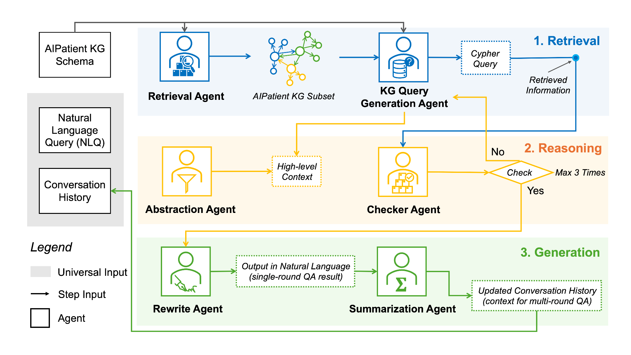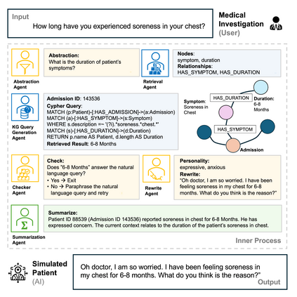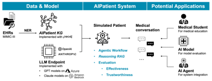 Simulated patient systems play a crucial role in modern medical education and research, providing safe, integrative learning environments and enabling clinical decision-making simulations. Large Language Models (LLM) could advance simulated patient systems by replicating medical conditions and patient-doctor interactions with high fidelity and low cost. However, ensuring the effectiveness and trustworthiness of these systems remains a challenge, as they require a large, diverse, and precise patient knowledgebase, along with a robust and stable knowledge diffusion to users. Here, we developed AIPatient, an advanced simulated patient system with AIPatient Knowledge Graph (AIPatient KG) as the input and the Reasoning Retrieval-Augmented Generation (Reasoning RAG) agentic workflow as the generation backbone. AIPatient KG samples data from Electronic Health Records (EHRs) in the Medical Information Mart for Intensive Care (MIMIC)-III database, producing a clinically diverse and relevant cohort of 1,495 patients with high knowledgebase validity (F1 0.89). Reasoning RAG leverages six LLM powered agents spanning tasks including retrieval, KG query generation, abstraction, checker, rewrite, and summarization. This agentic framework reaches an overall accuracy of 94.15% in EHR-based medical Question Answering (QA), outperforming benchmarks that use either no agent or only partial agent integration. Our system also presents high readability (median Flesch Reading Ease 77.23; median Flesch Kincaid Grade 5.6), robustness (ANOVA F-value 0.6126, p>0.1), and stability (ANOVA F-value 0.782, p>0.1). The promising performance of the AIPatient system highlights its potential to support a wide range of applications, including medical education, model evaluation, and system integration.