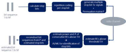 In this article, a novel approach for mobile radio communications is proposed and analysed, which is promising for future 6G cooperative distributed MIMO systems. The fundamental idea is a new mechanism namely start stop bit method, which transmits bit sequences as the start/stop bits of a synchronized counter instead of transmitting the full encoded bit sequence itself. In that way, theoretically, we can transmit infinitely long data messages with only one bit for starting and one bit for stopping the counter. The value of the counter, as identified by the stop bit, is then used to reconstruct and remap the one and unique transmitted bit sequence. The start stop bit method is characterized by a high signal sparsity as only two bits are transmitted, independently of the bit sequence length for the message. Among the benefits of the start stop bit method are energy efficient data transmission, and effective distributed MIMO systems, which exploit the sparse inter cooperation area interference as well as the low processing complexity for the sparse precoder calculation. Moreover, for the next mobile wireless generation, we propose an advanced scheme of the start stop bit method which enhances its resource usage. We call the resulting method a sparse dMIMO system.