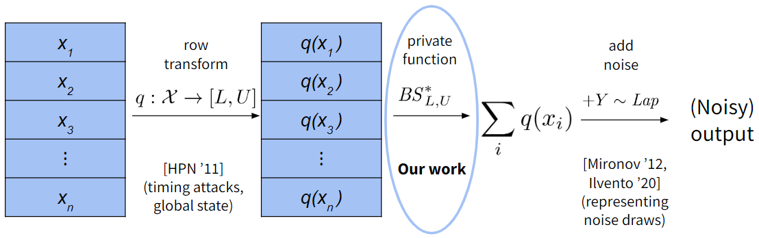 翻译:具体地说,当利用有限数据类型(即内流或浮点数)计算基本统计数据(如总和)和对真实数据或整数进行理想化计算之间存在差异时,就会出现这类数据。这些差异导致已执行统计数据的敏感度(即一个人的数据能对结果产生多大影响)大大高于我们预期的敏感度。因此,几乎所有有差异的隐私图书馆都未能引入足够的噪音来隐藏差异性隐私所要求的个人一级信息,而且我们表明,在现实地攻击差异性私人查询系统时,可能会利用这些数据。除了提出这些脆弱性外,我们还提供若干解决方案,这些解决方案修改或限制执行总和的方式,以便恢复理想化或接近理想化的敏感度界限。